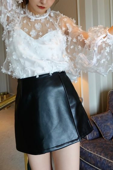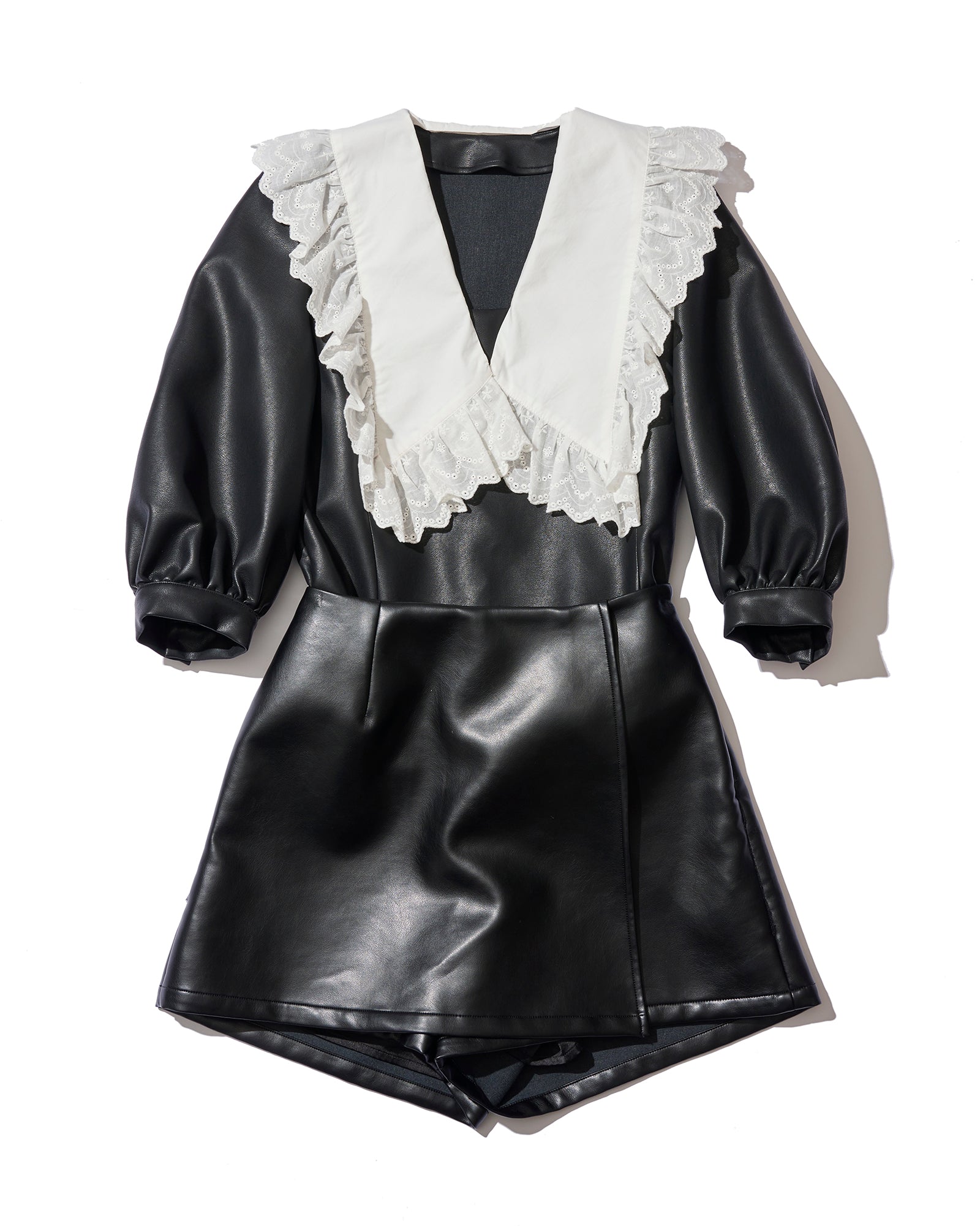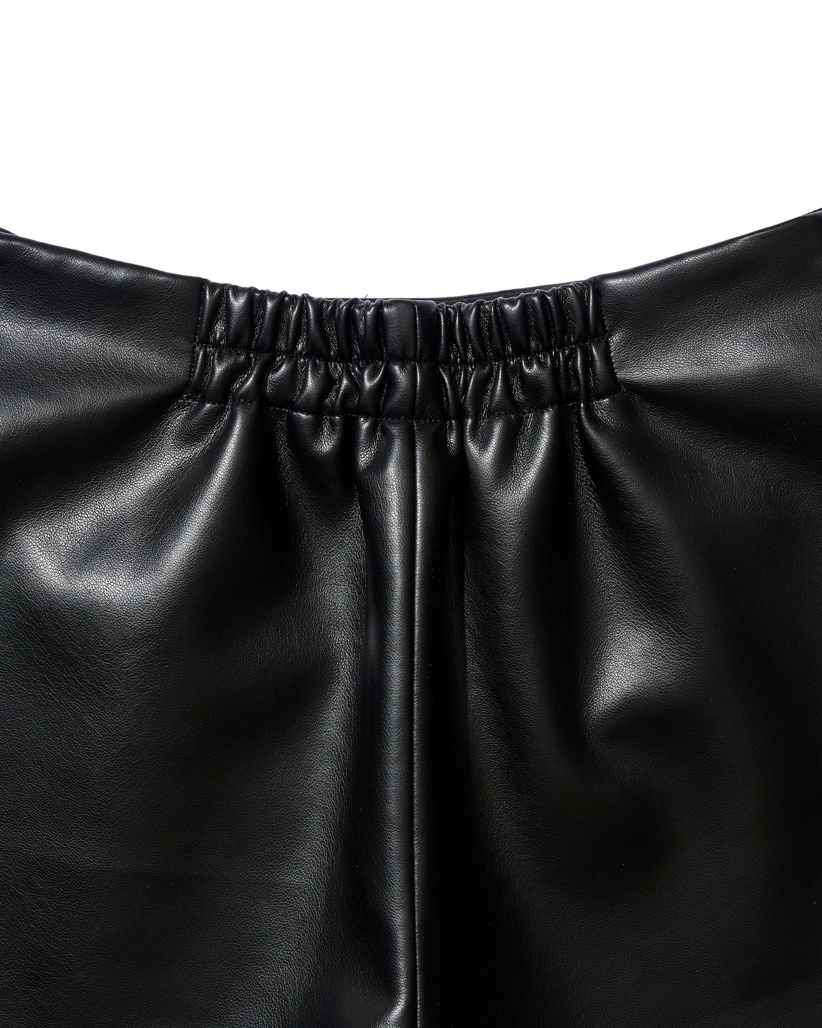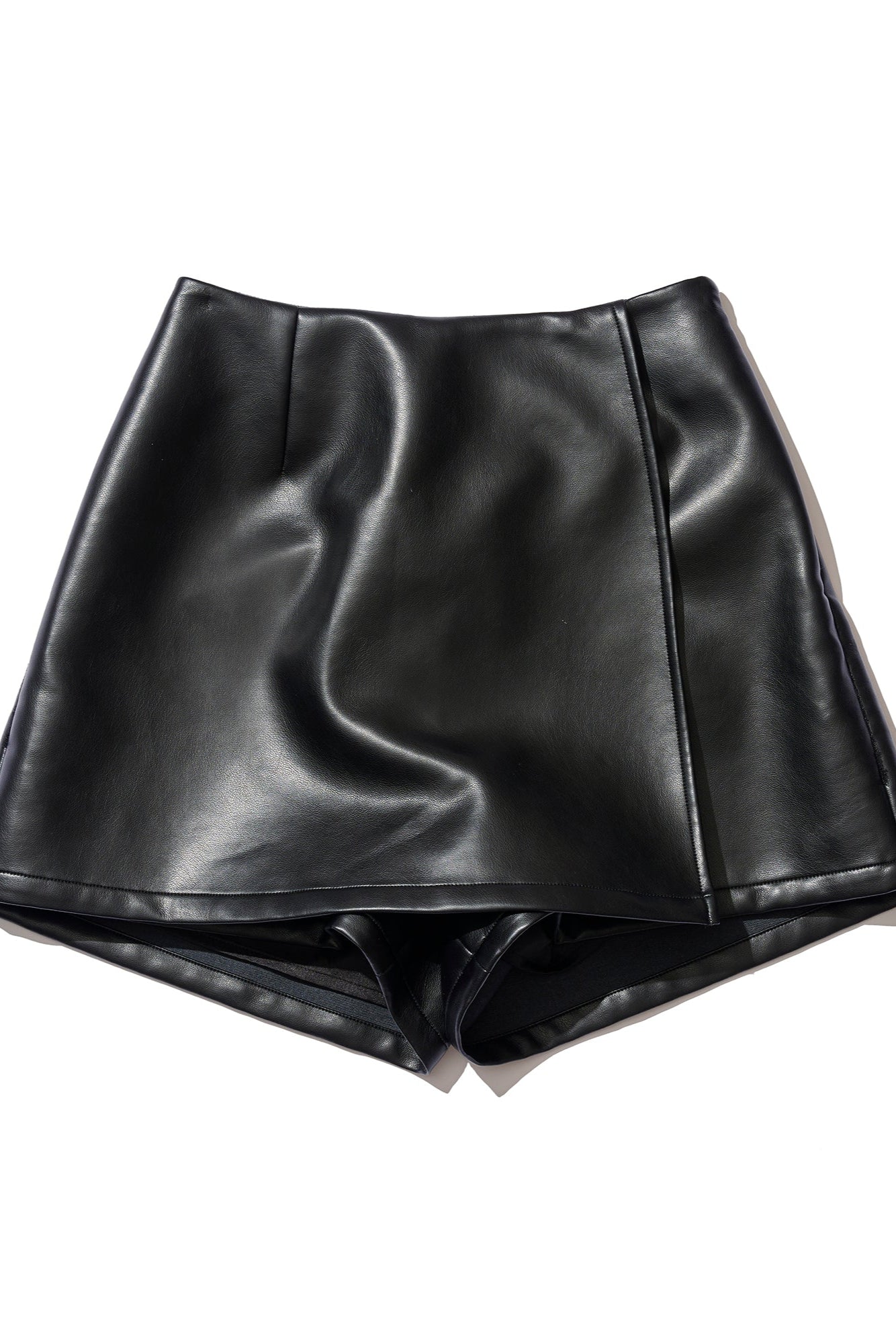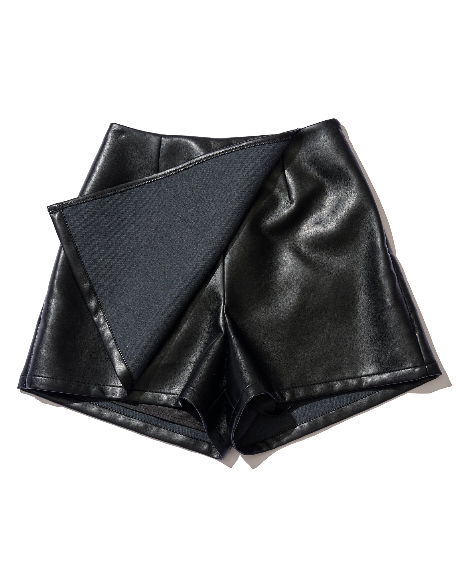本革のような質感のフェイクレザーで高級感のある手触りが特徴的なボトムス。