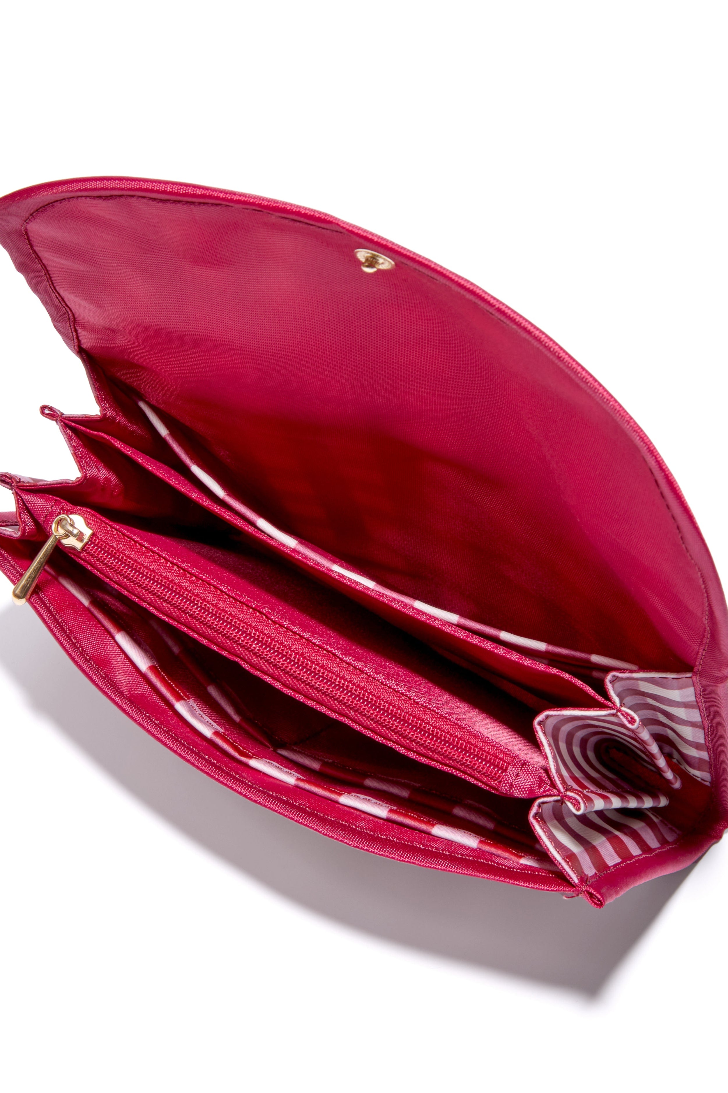 ファスナーポケットが1つ、仕切りスペースが3つ、カード入れが4つ、フリーポケットが2つとじゃばらタイプで機能性抜群。