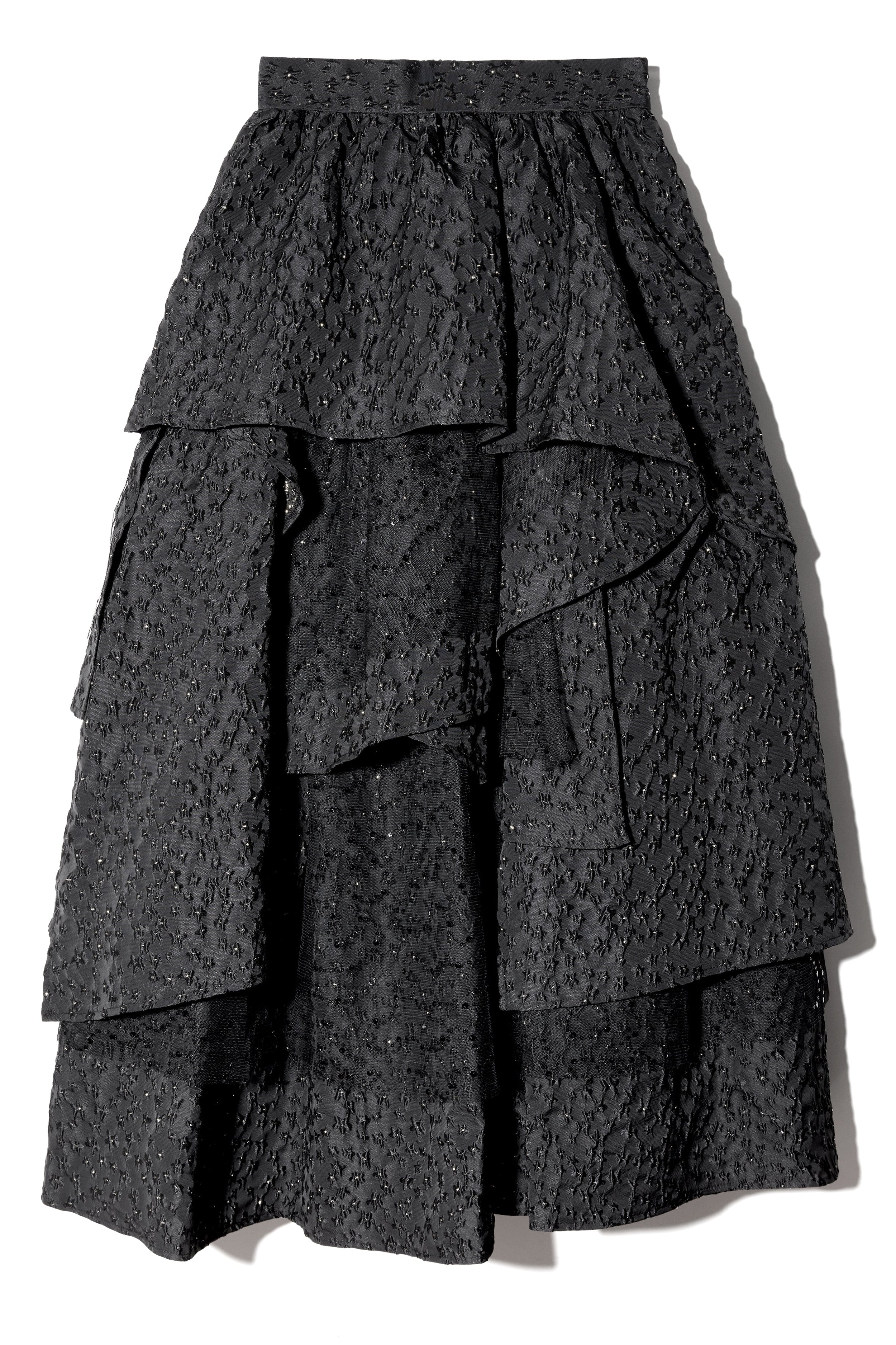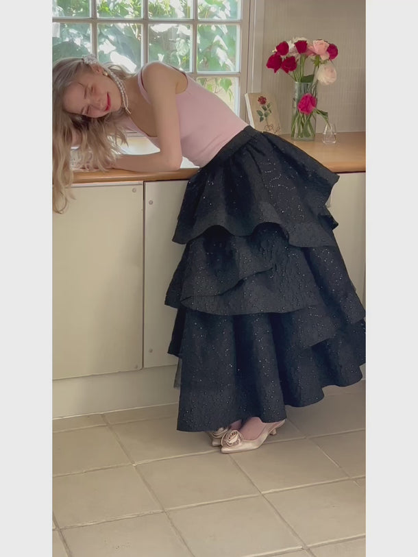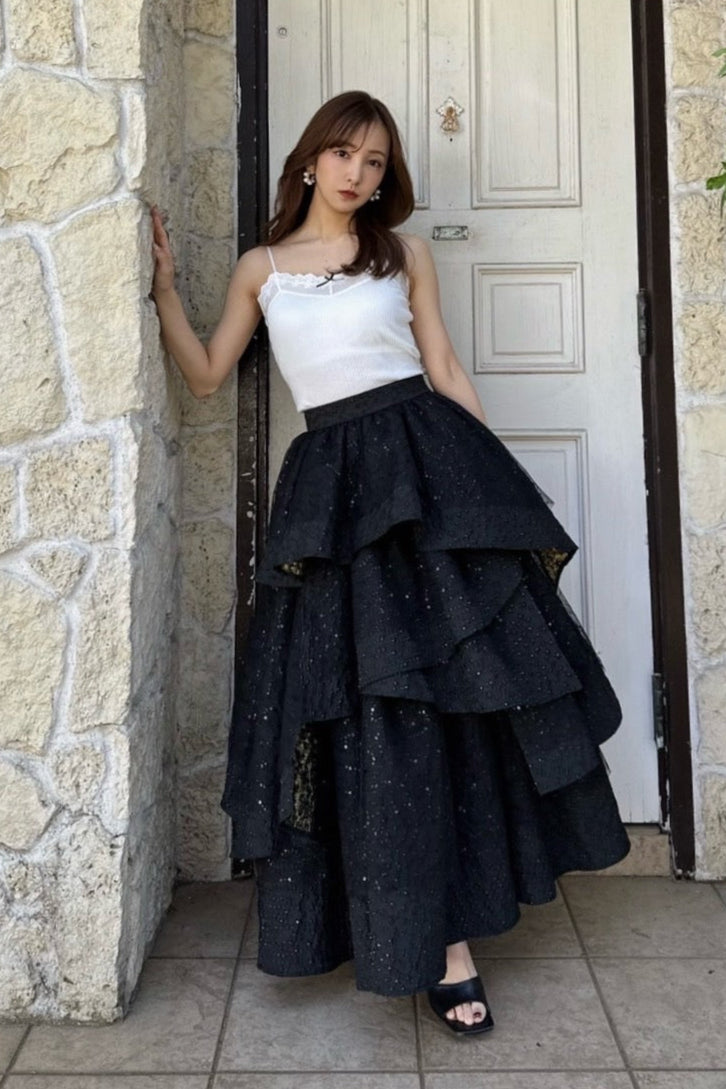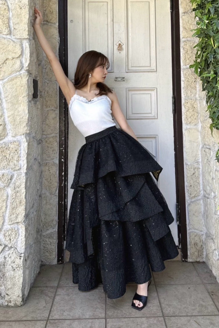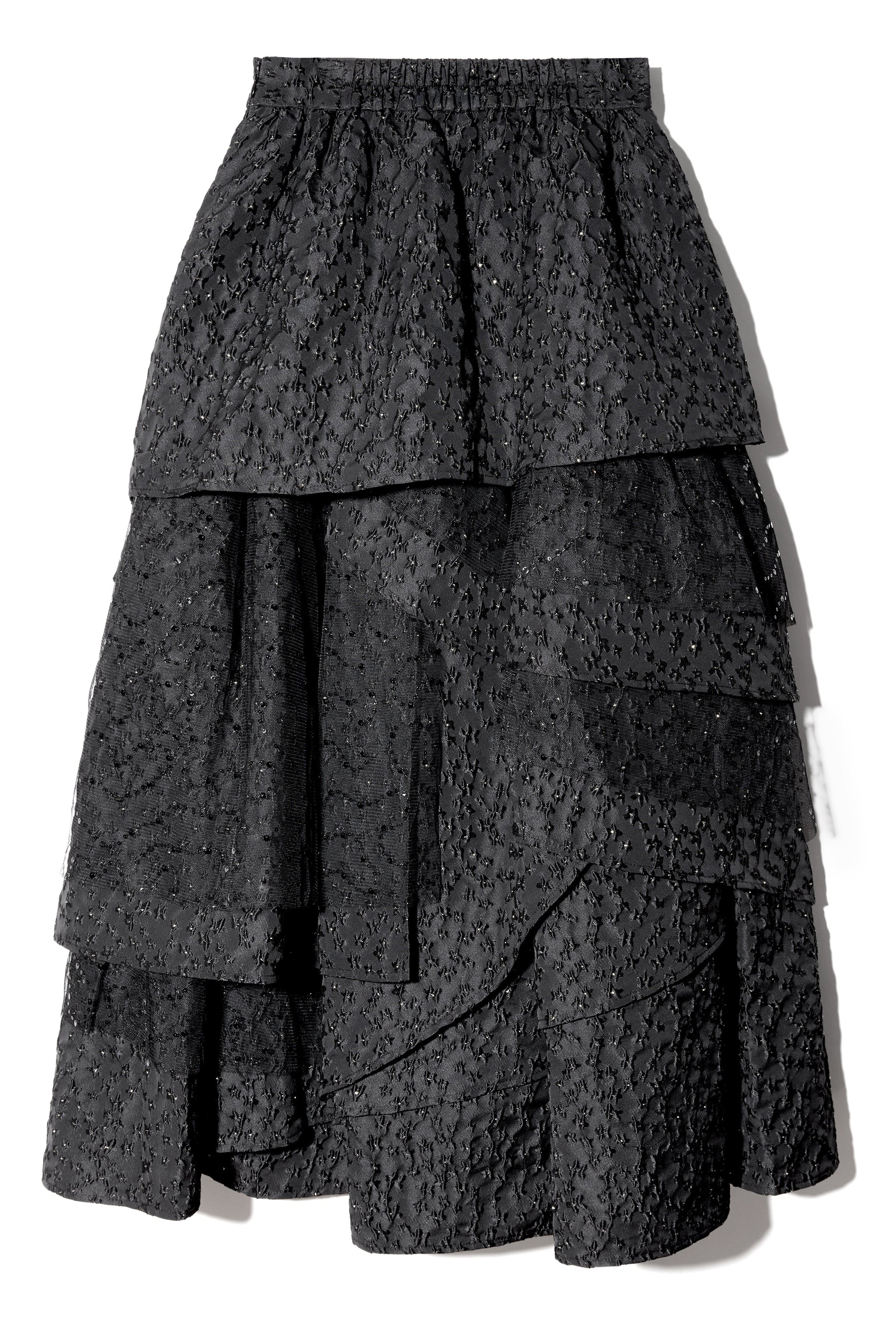 高級感のあるジャガード素材を贅沢に使用したドラマティックなティアードスカート。