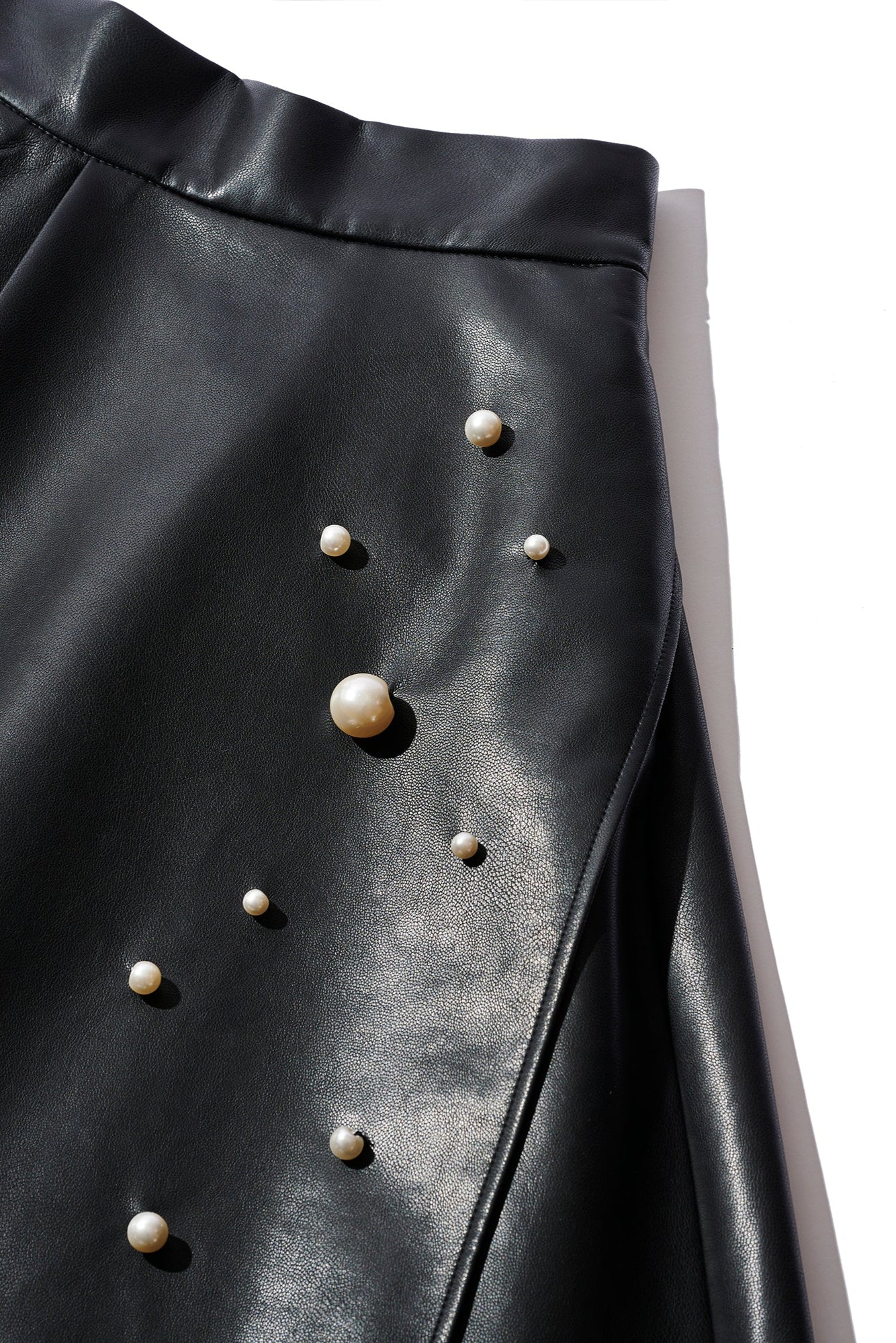 光沢があり、ぱっと見た印象で目を惹くフェイクレザー素材に、