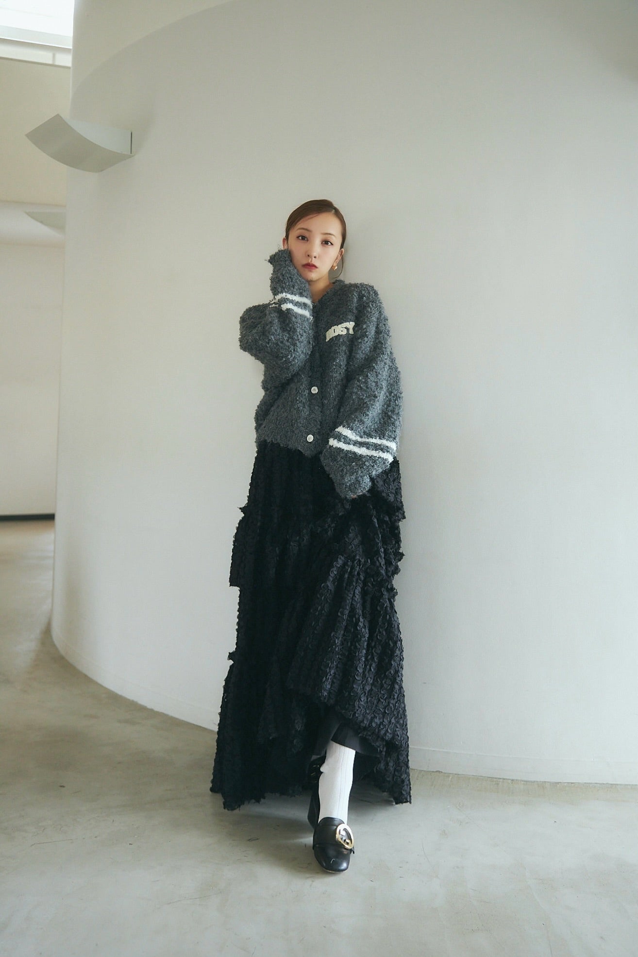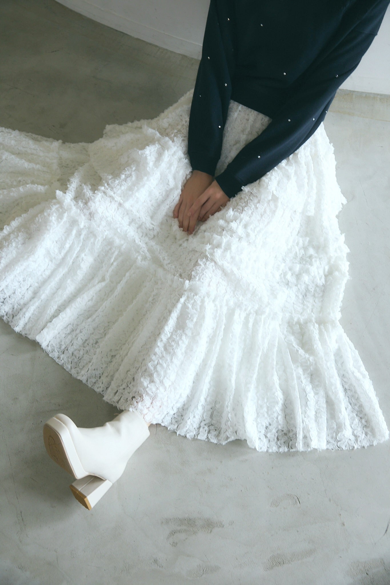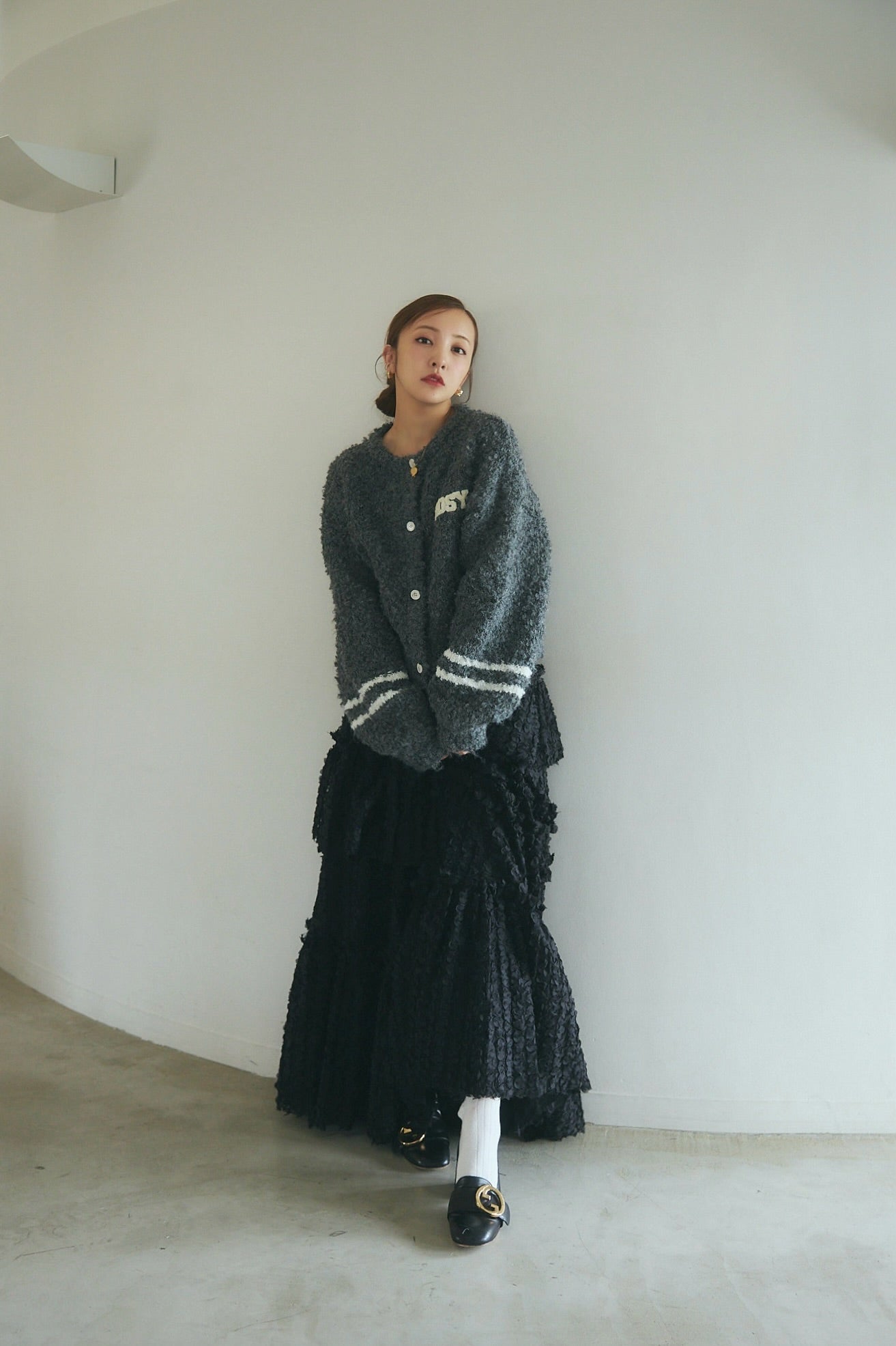 ふくれ感のある立体的な生地を使用。