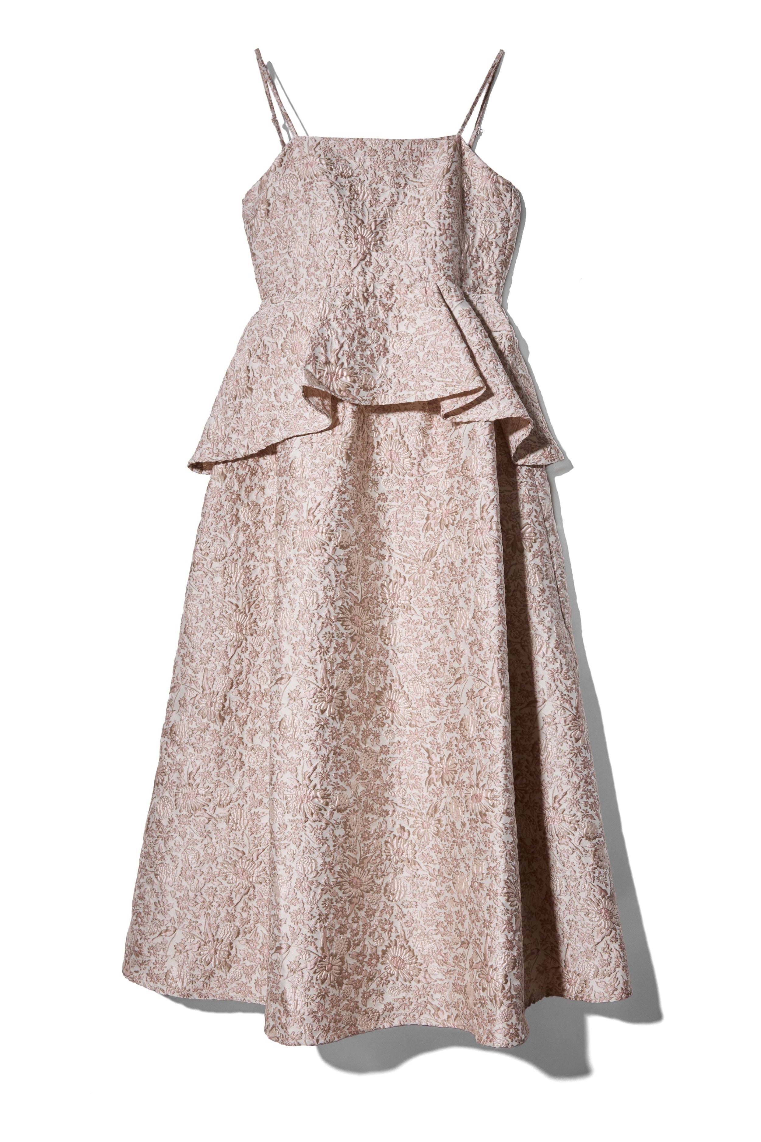 繊細なジャガード織りが美しい、立体感のある質感が魅力のキャミソールワンピース。