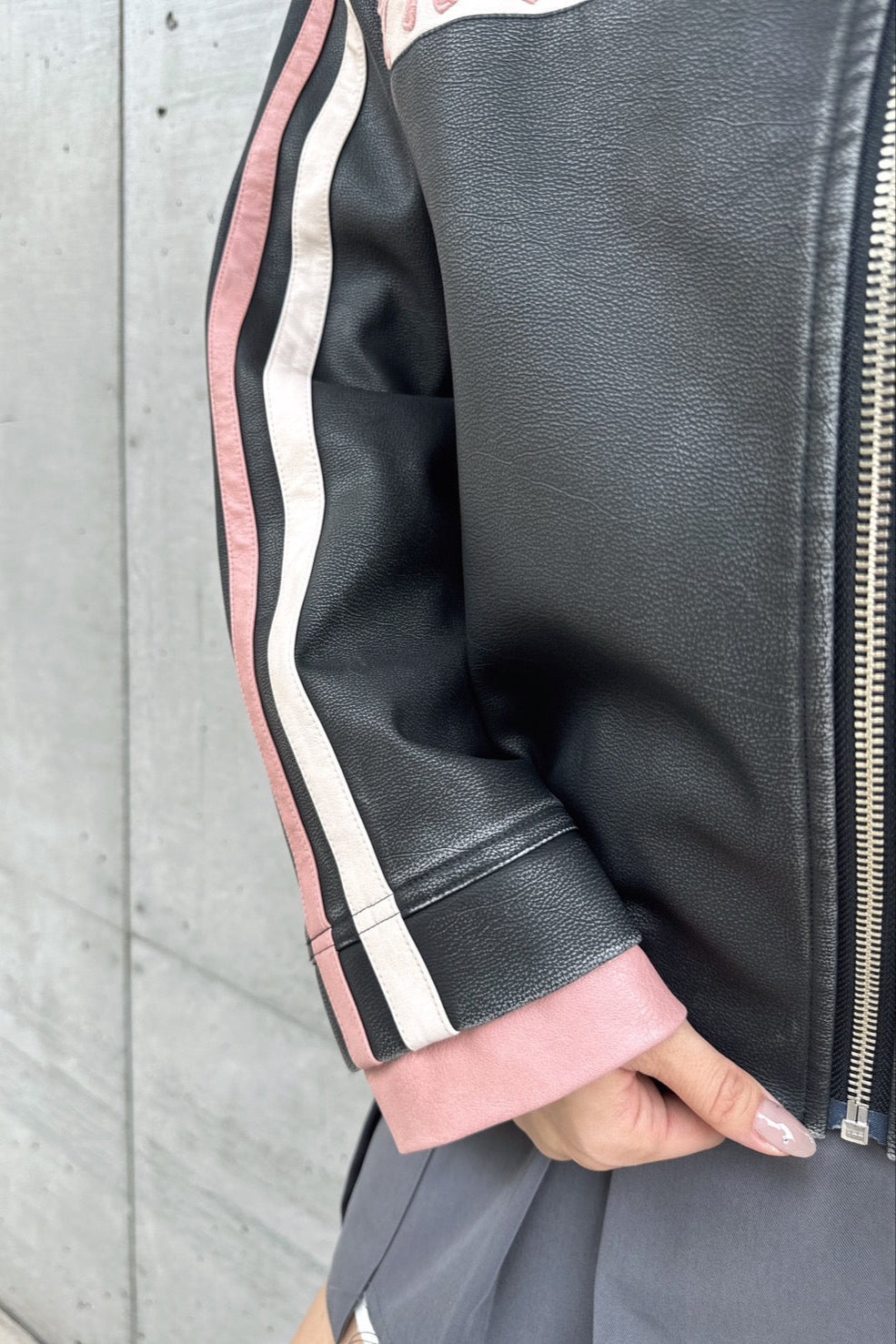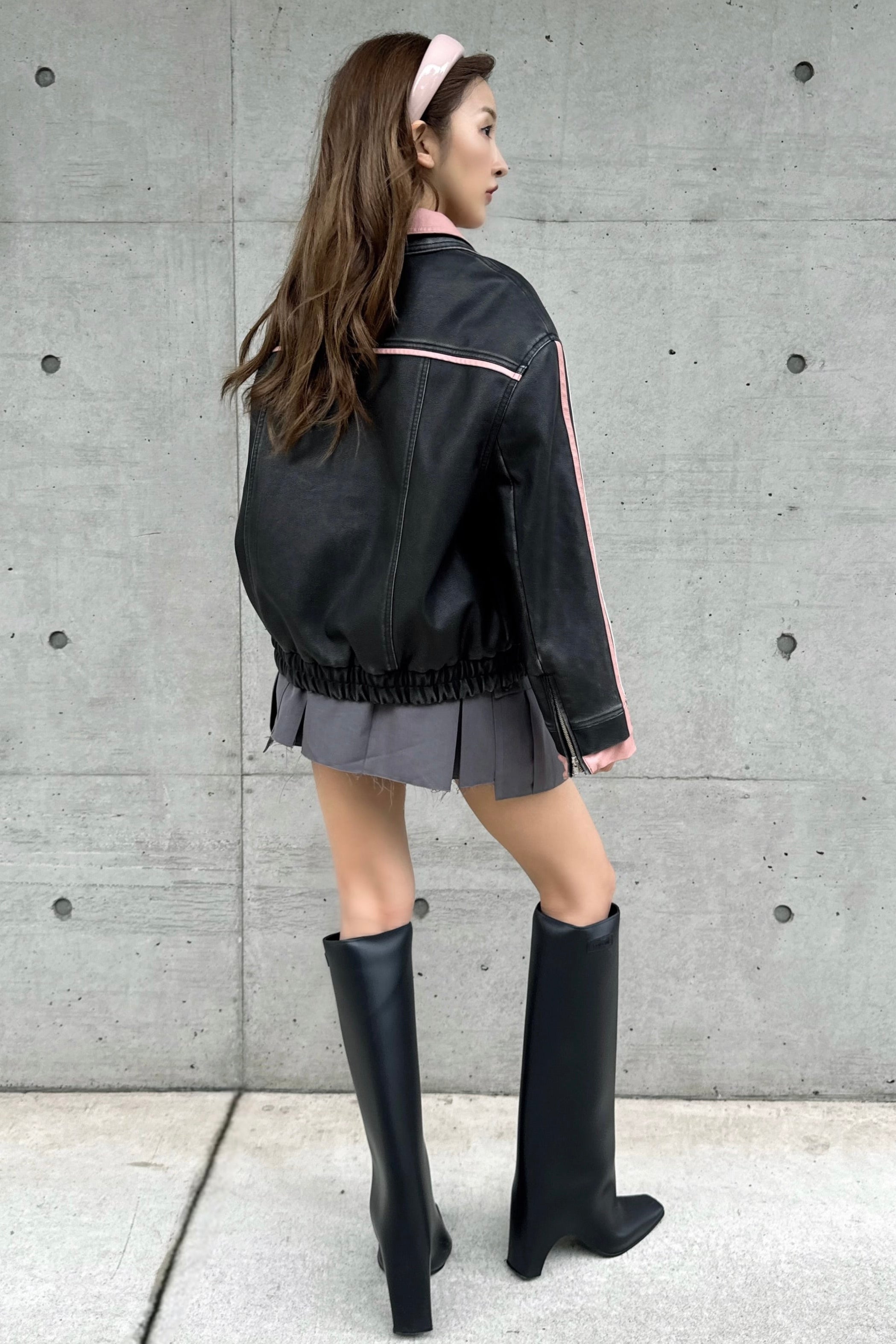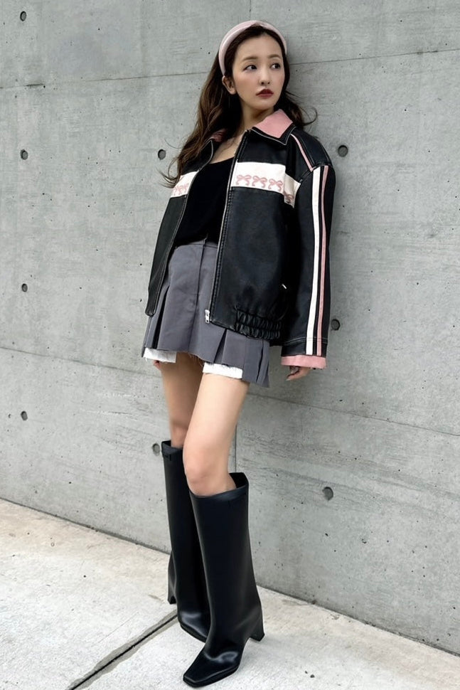 肉厚なレザー生地で厚手のアイテムも着込めるので真冬まで使いまわせる優秀アウターです。
