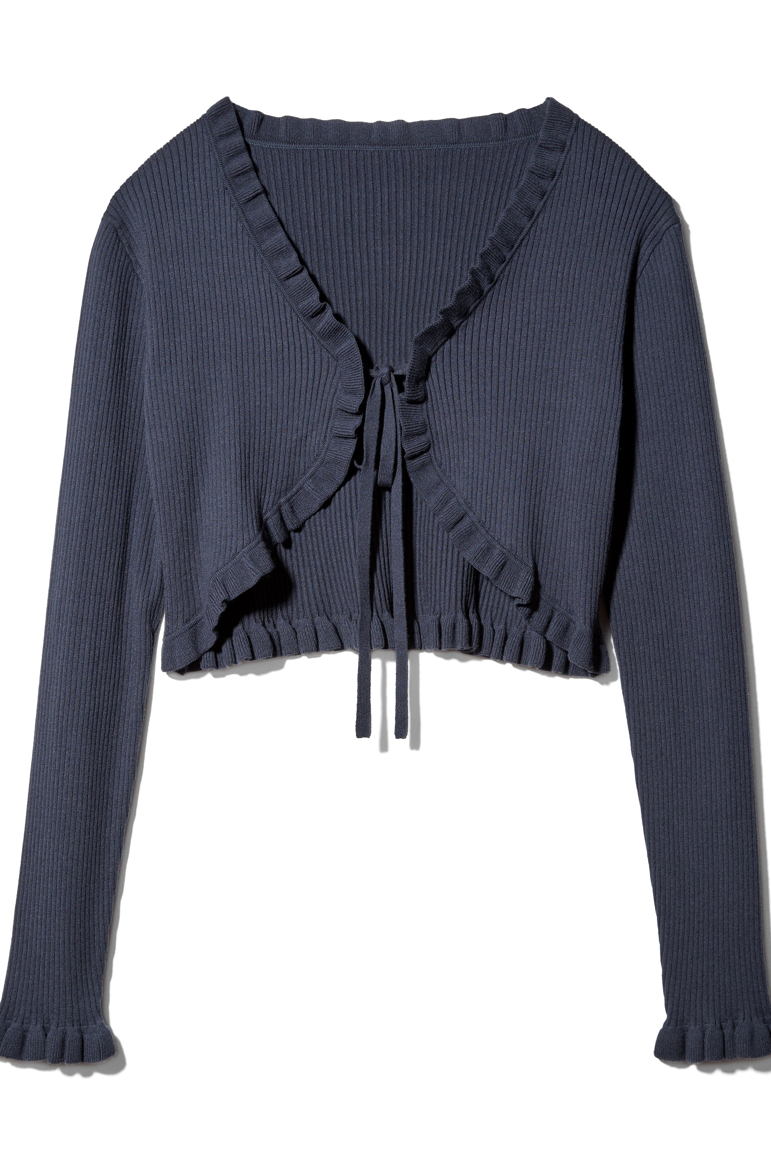 【UVカット仕様】CROPPED FRILL CARDIGAN - NAVY