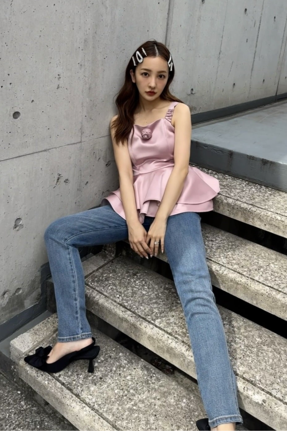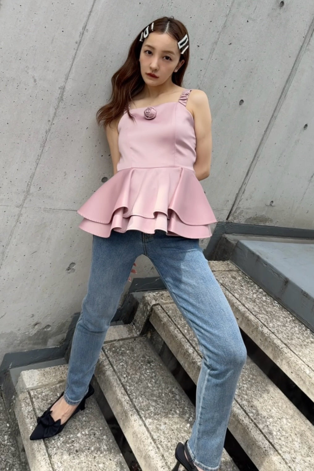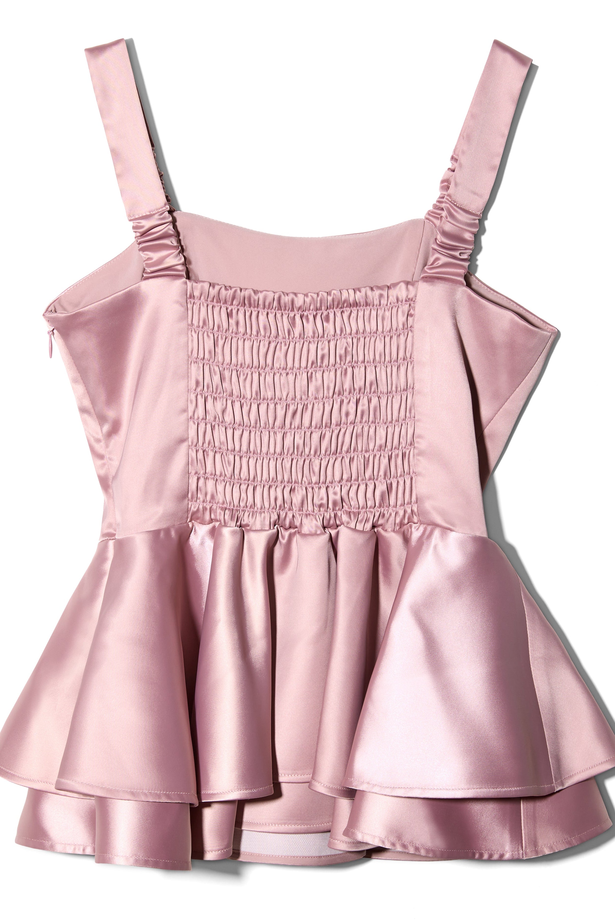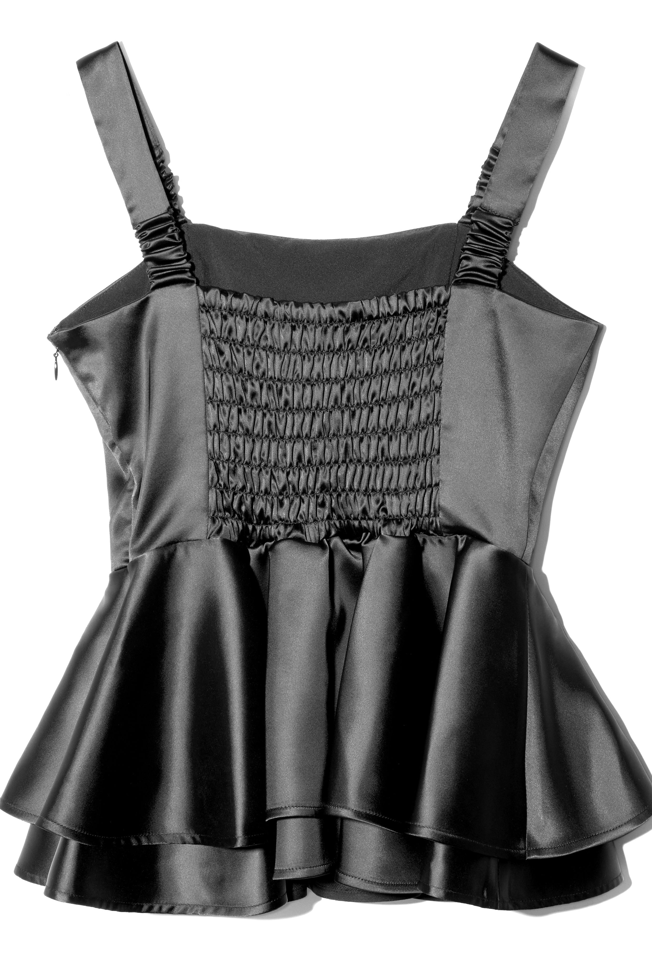 ウエストをきゅっと引き締め、裾に向かってふんわりと広がるペプラムシルエット。メリハリのあるラインを演出。