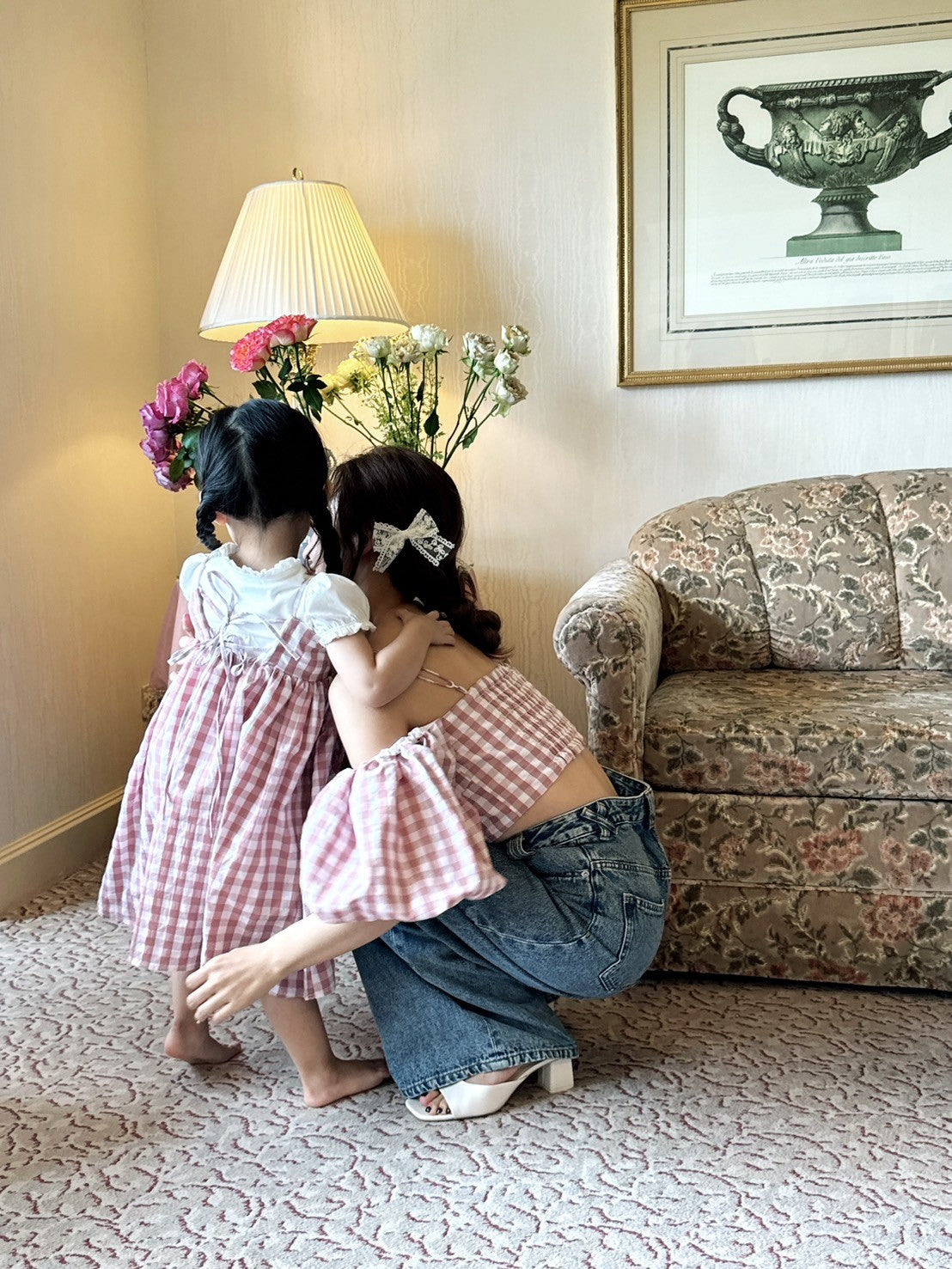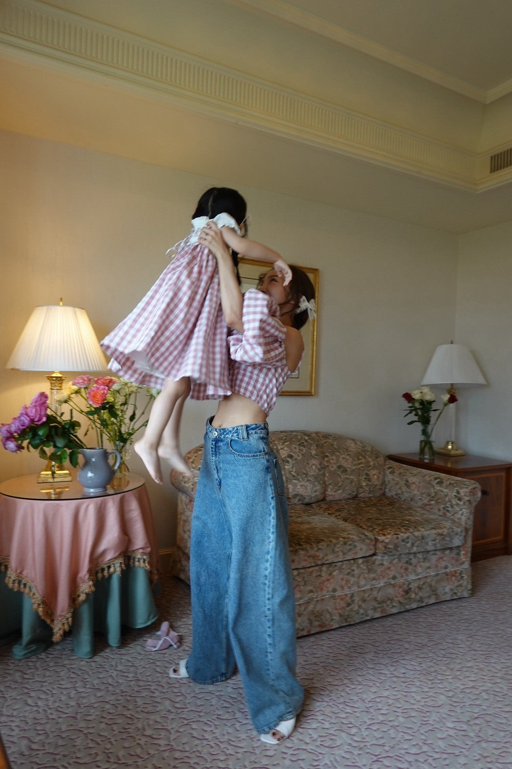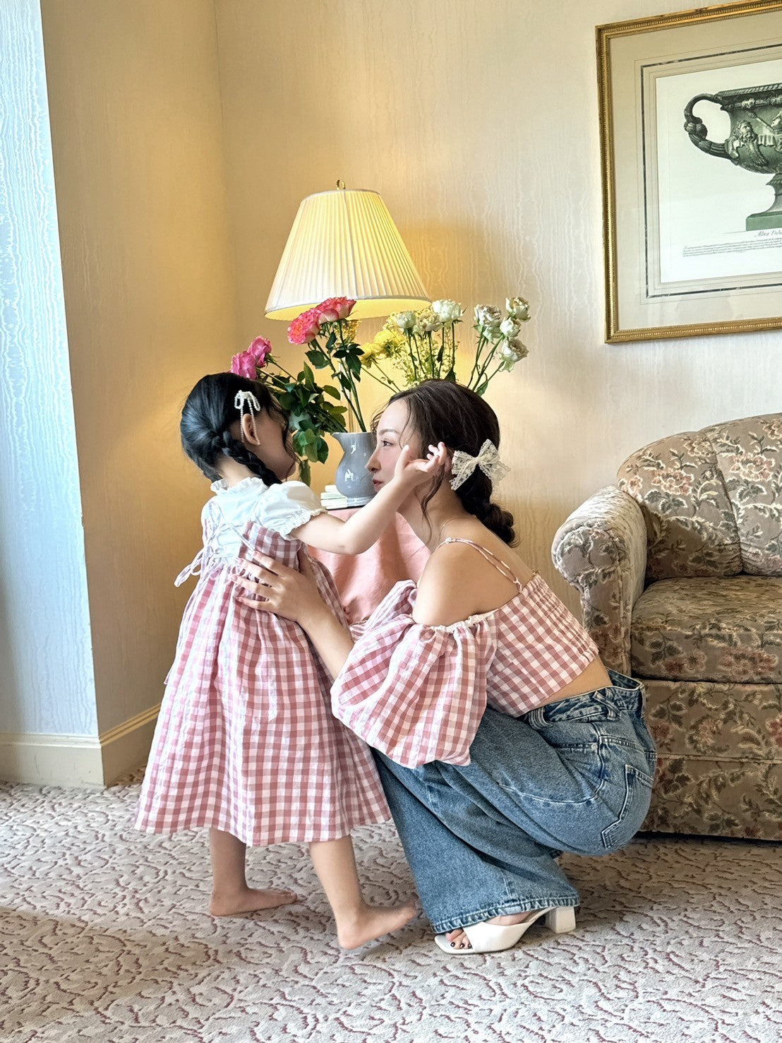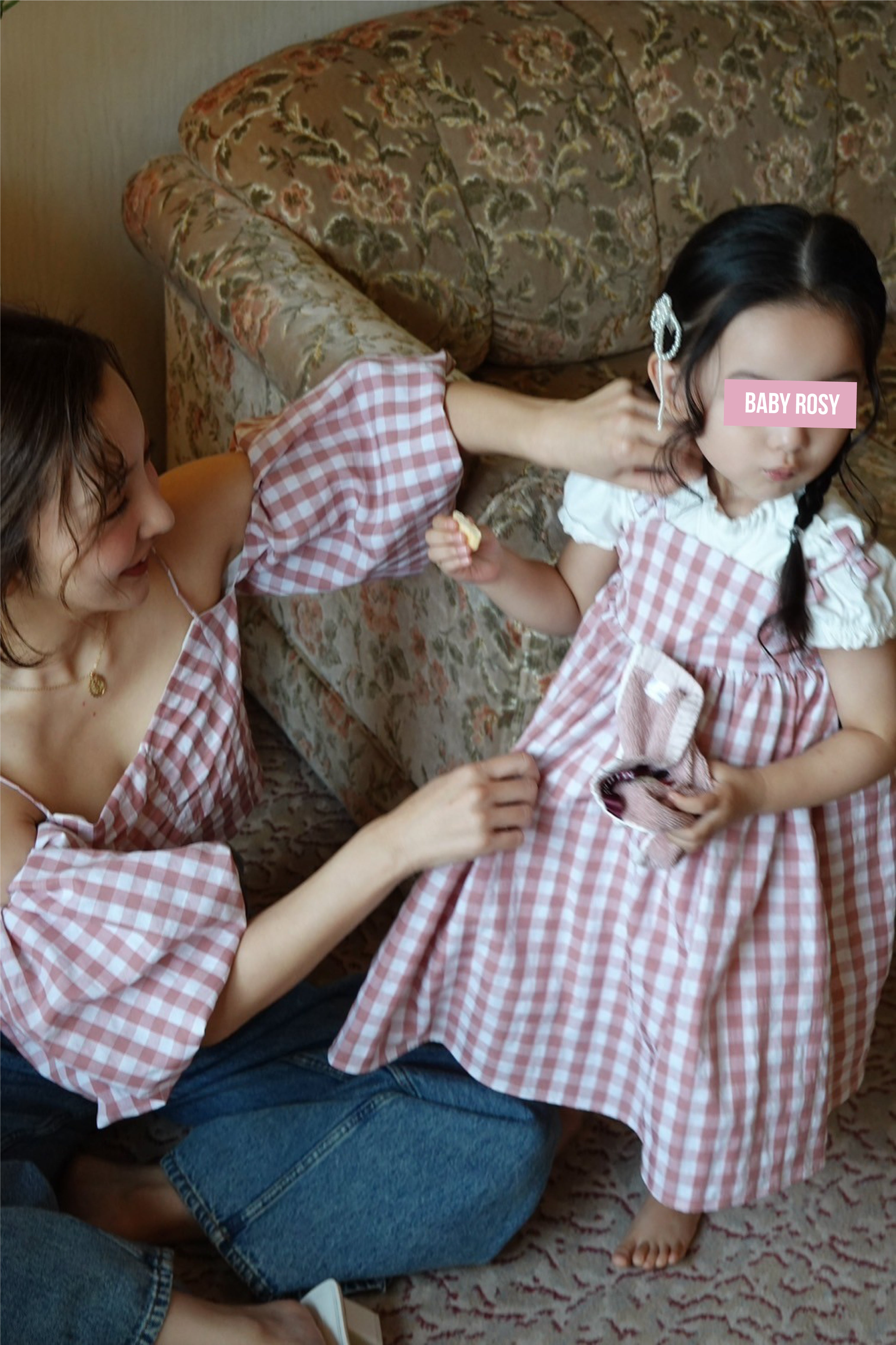 Matching gingham check pattern with mom ♥️