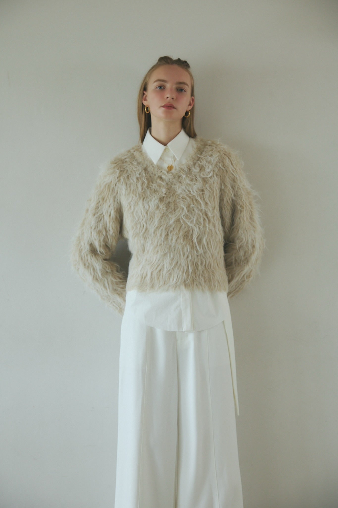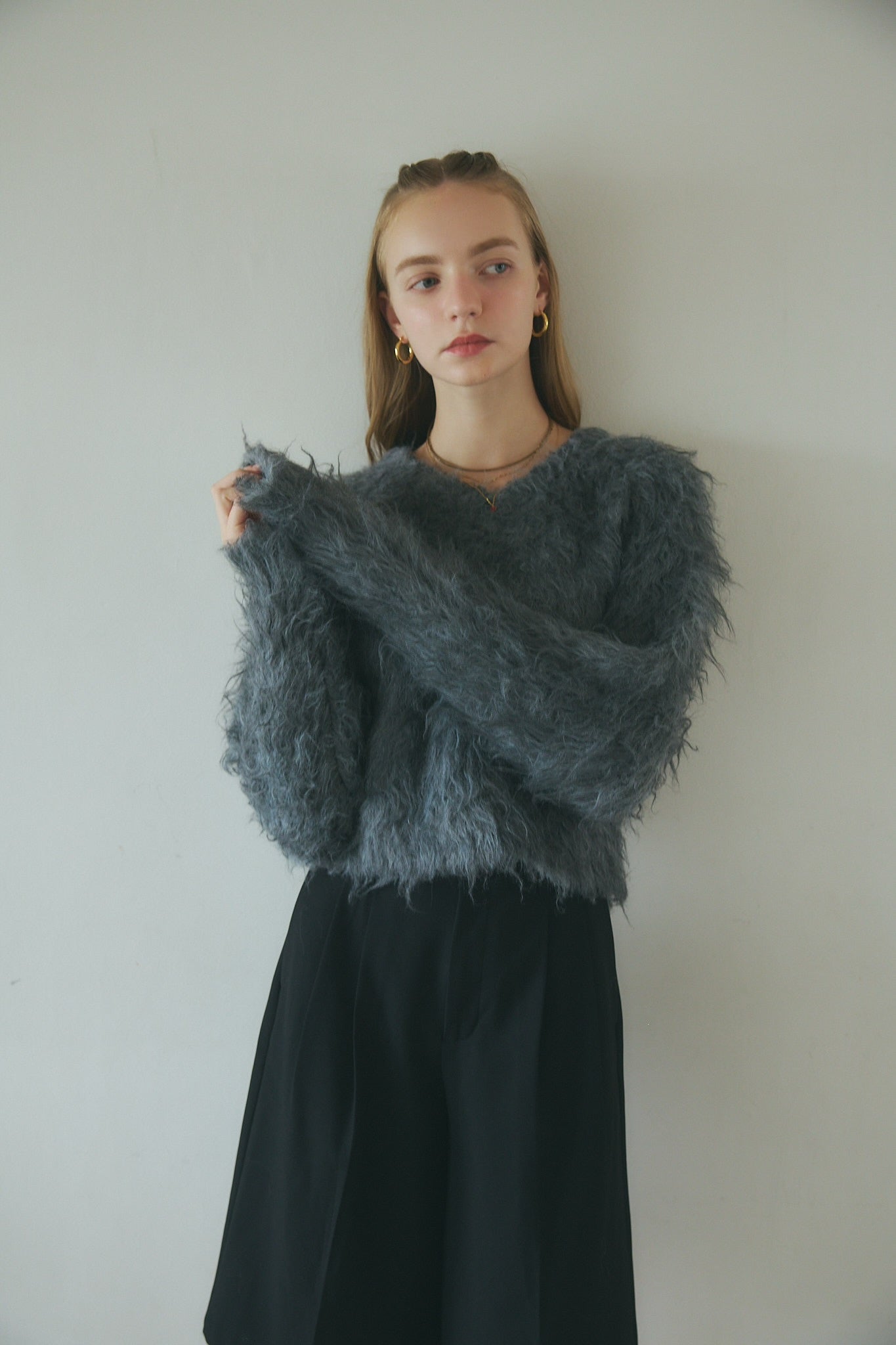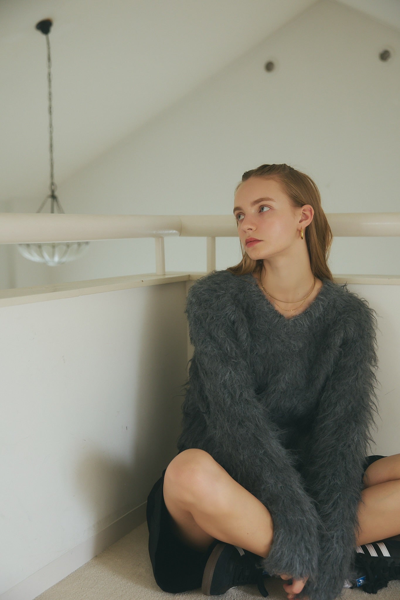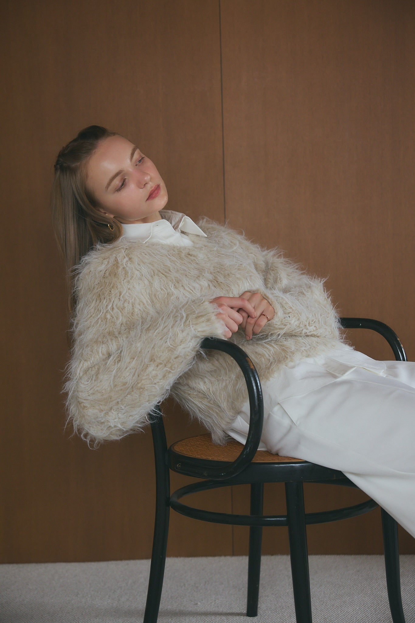 ふわふわとしたシャギー素材がシーズンムードを高めるニットプルオーバー。