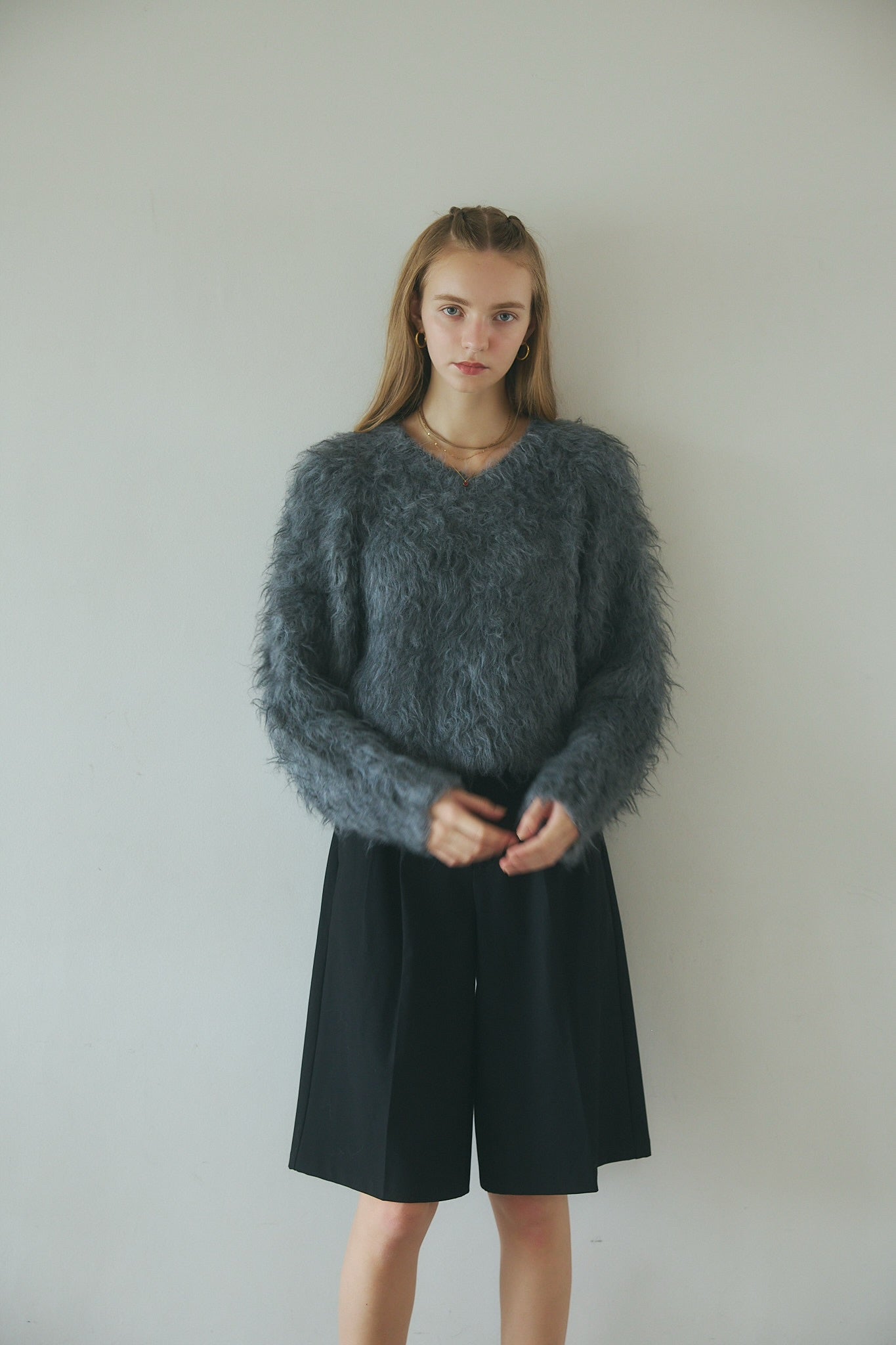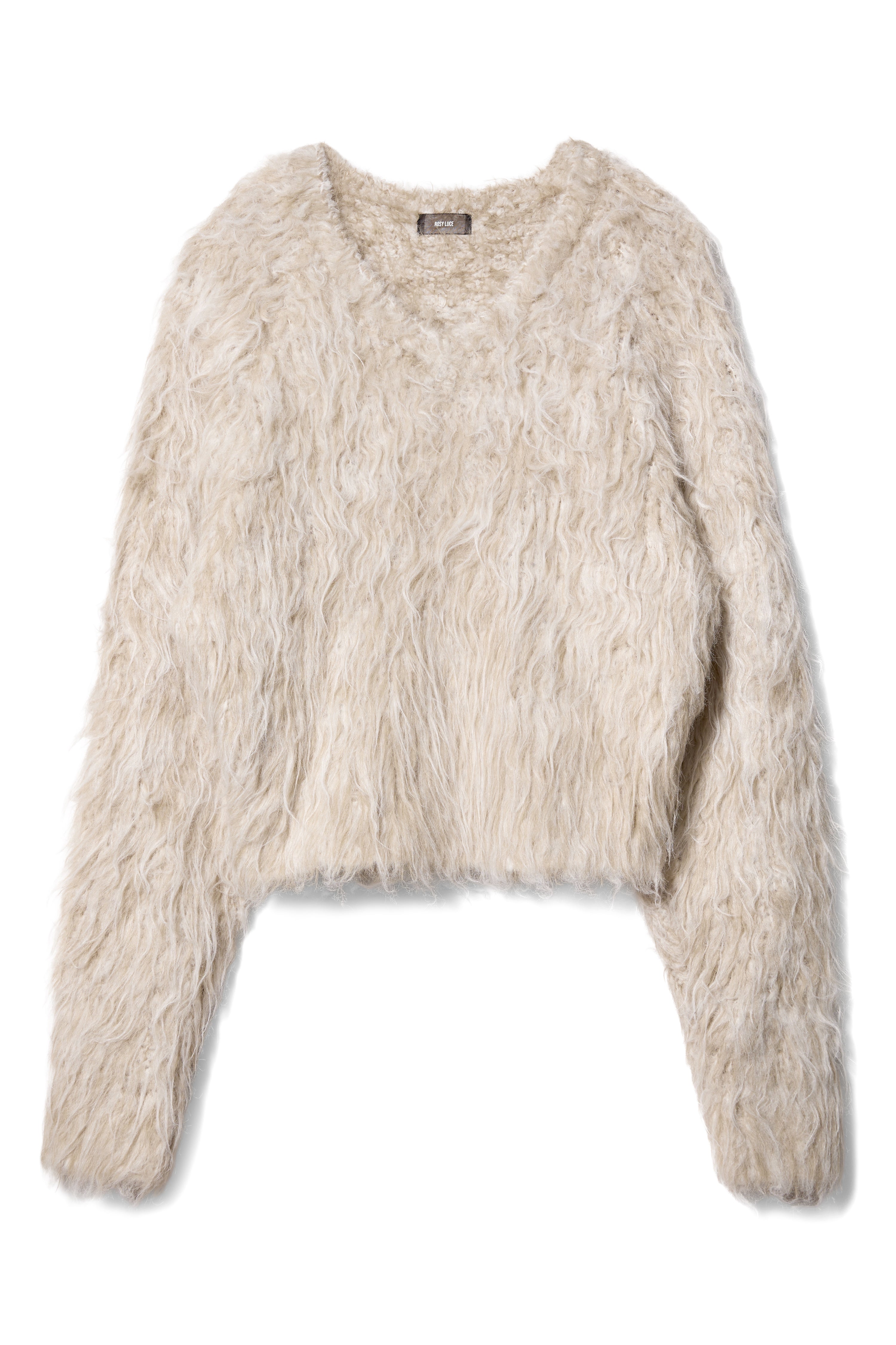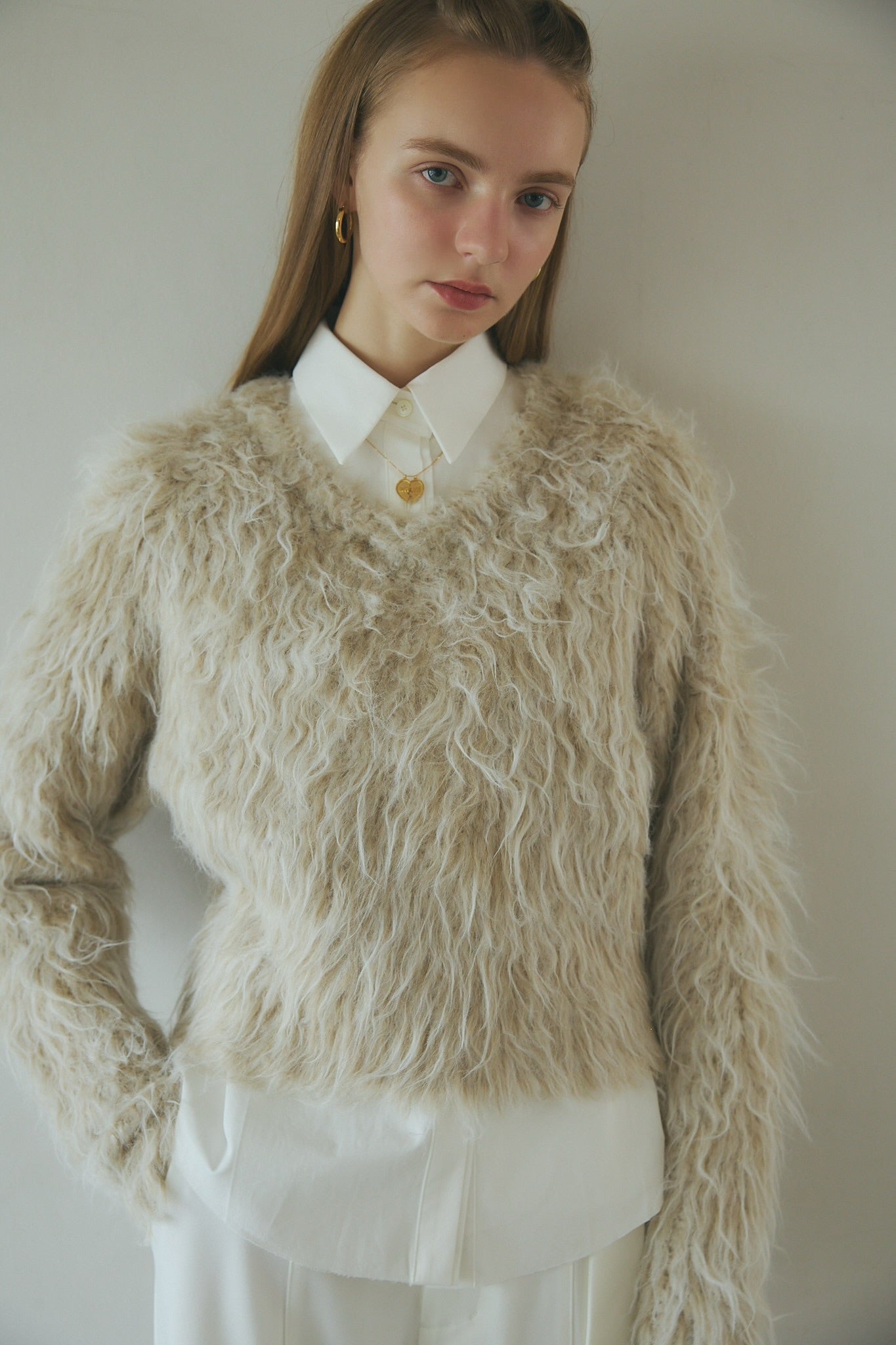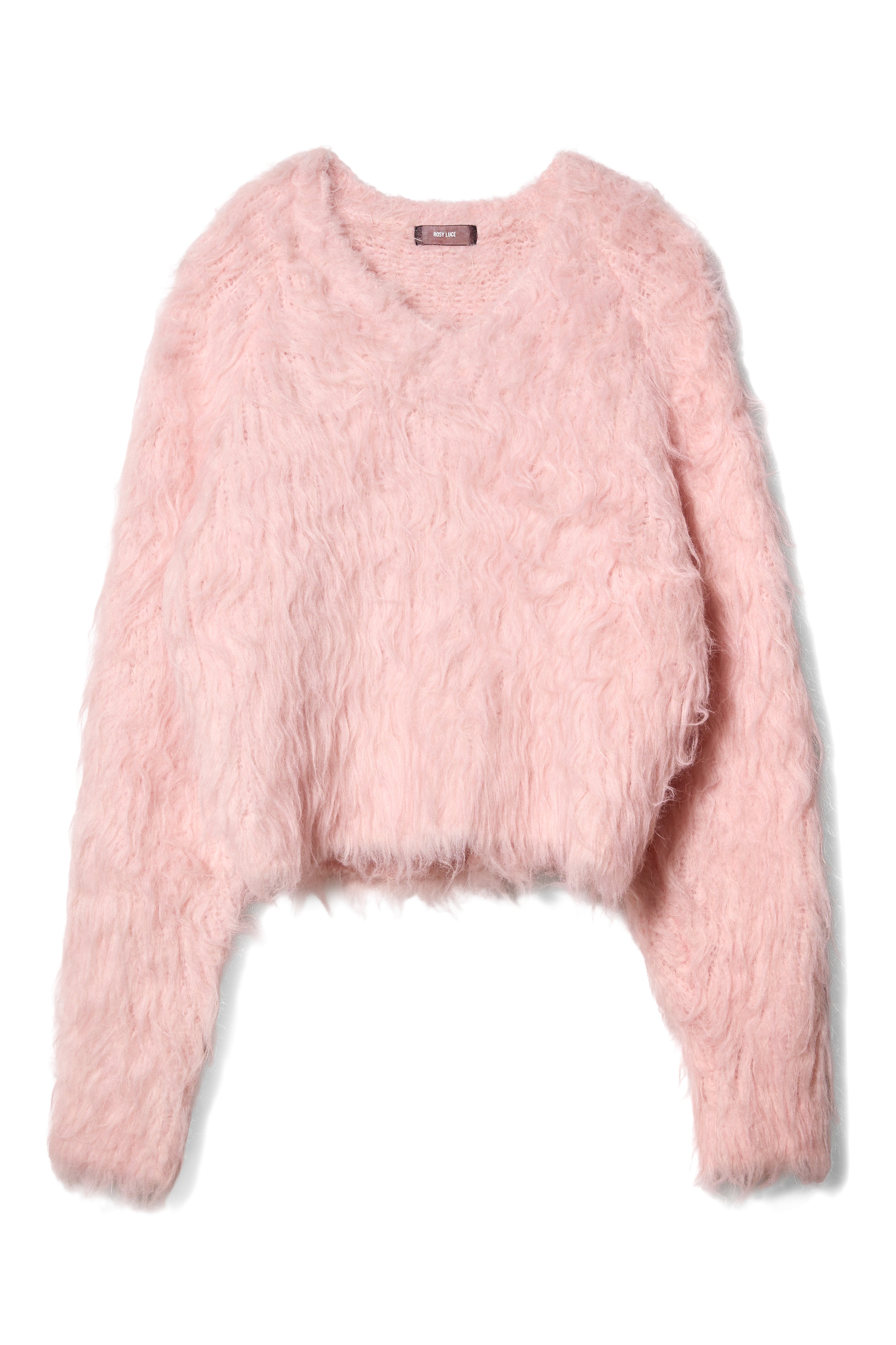 ふわふわとしたシャギー素材がシーズンムードを高めるニットプルオーバー。