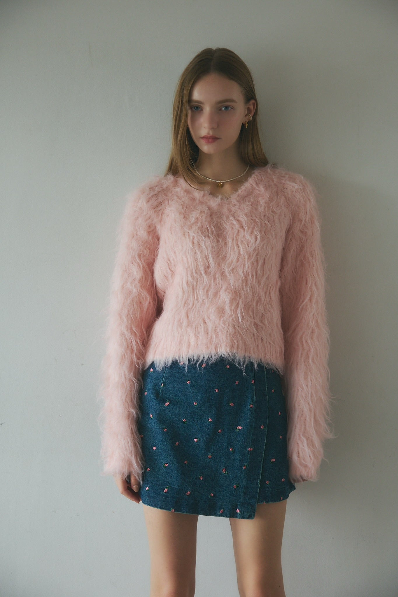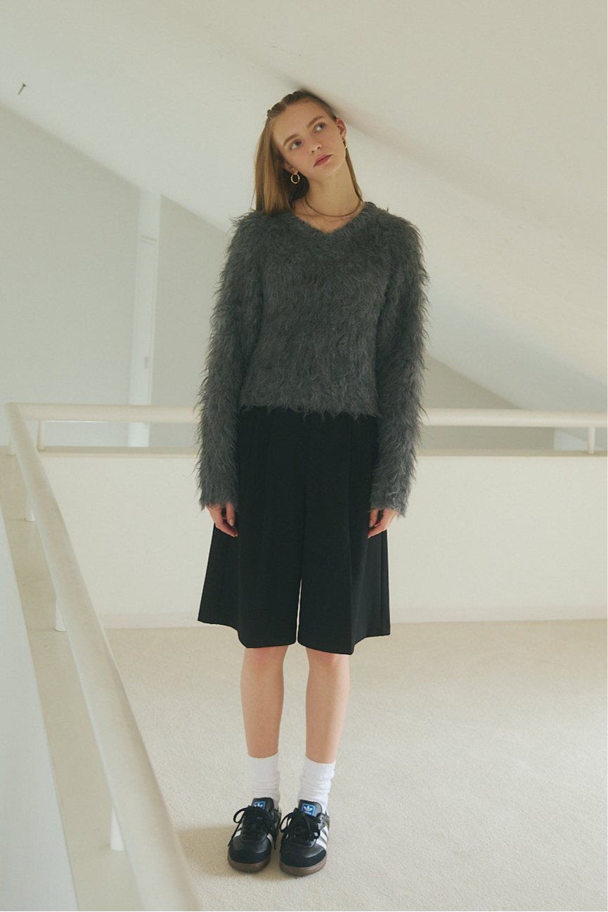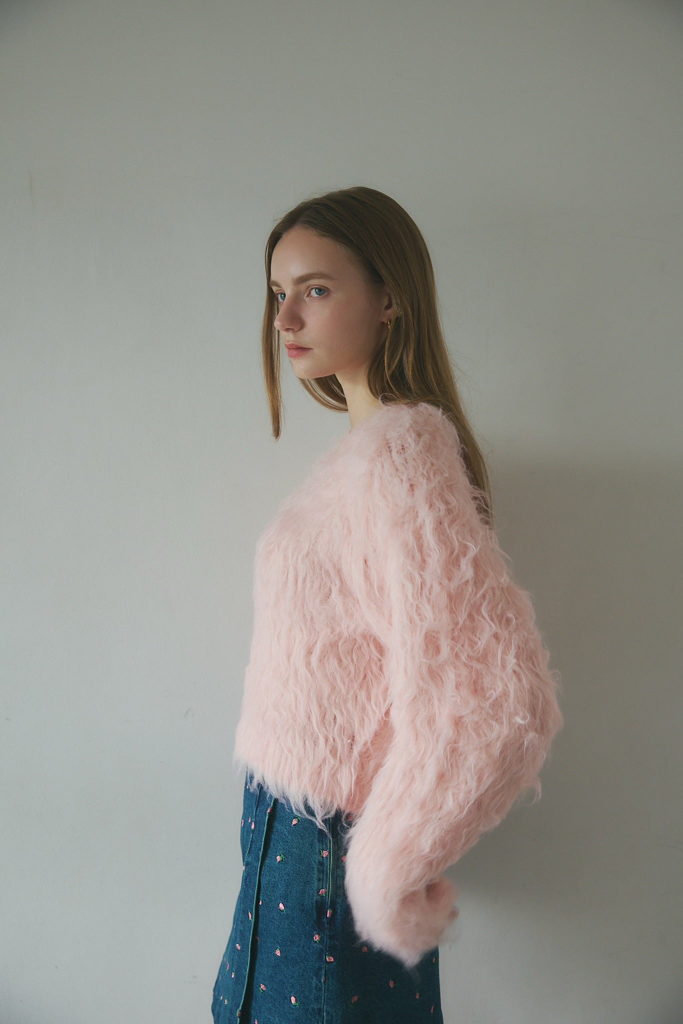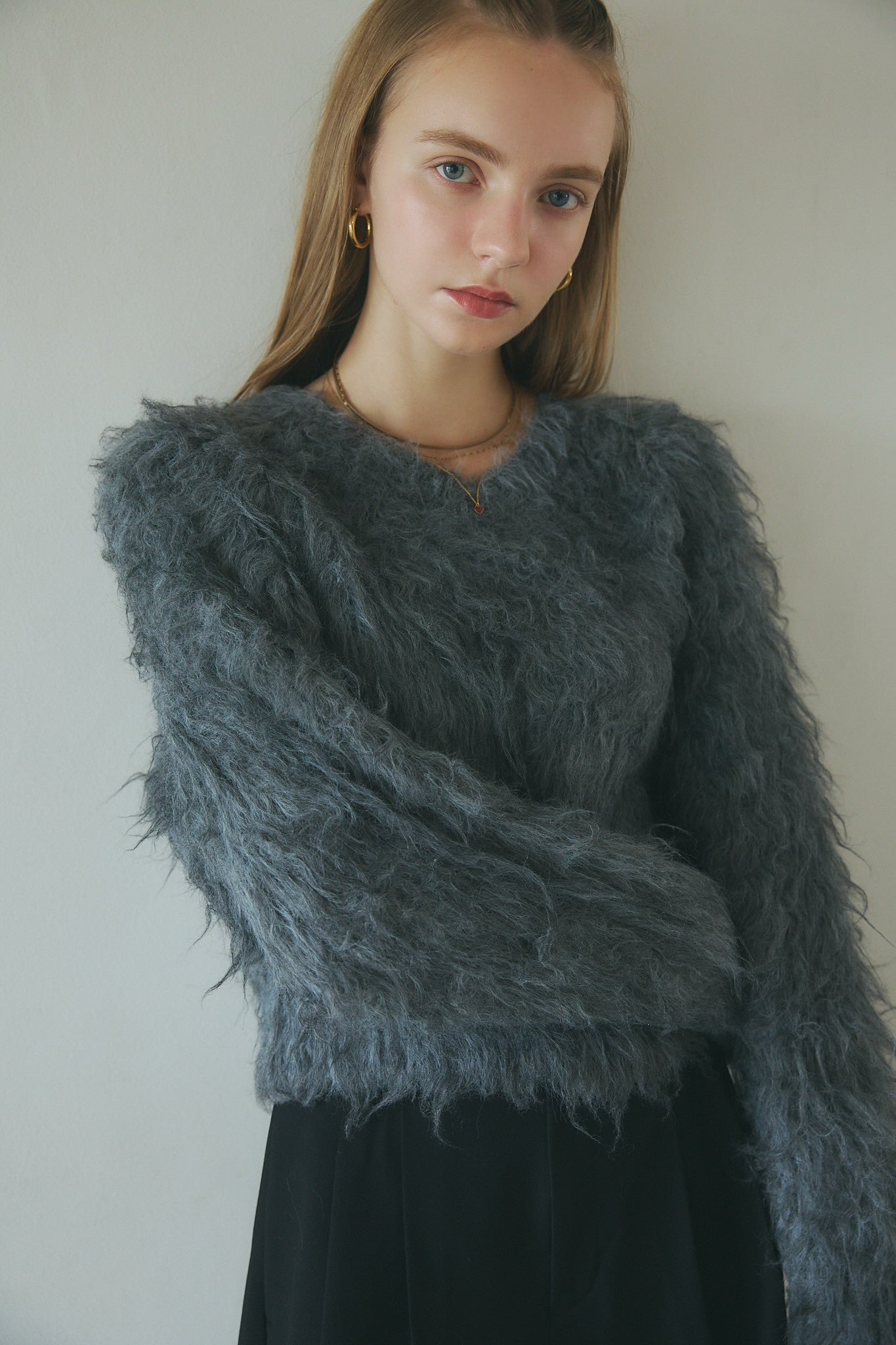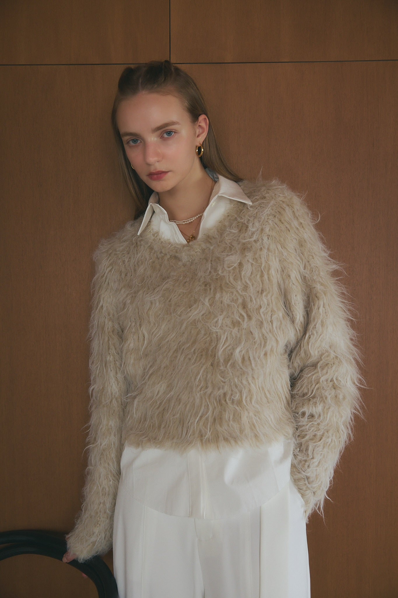 ふわふわとしたシャギー素材がシーズンムードを高めるニットプルオーバー。