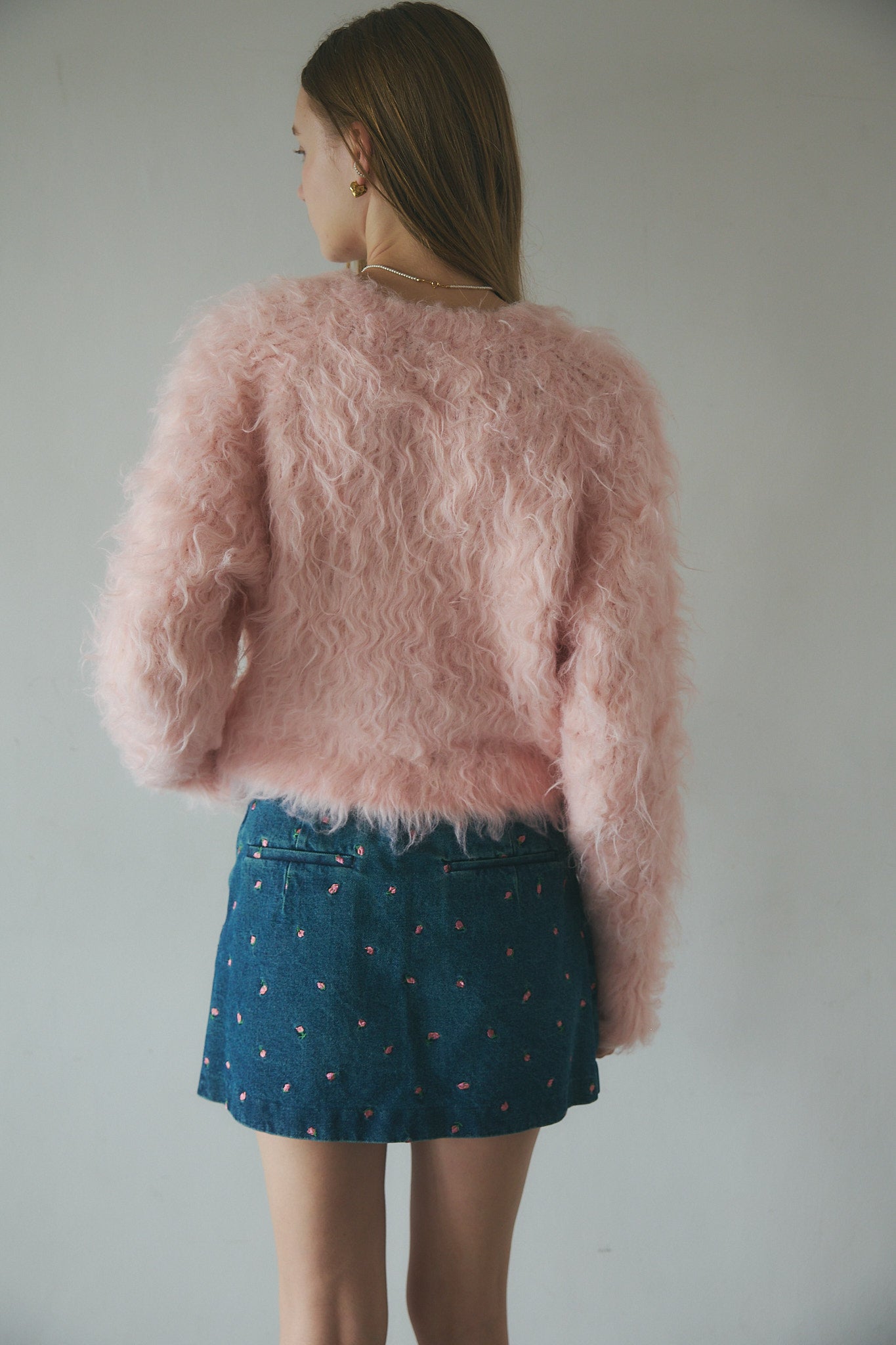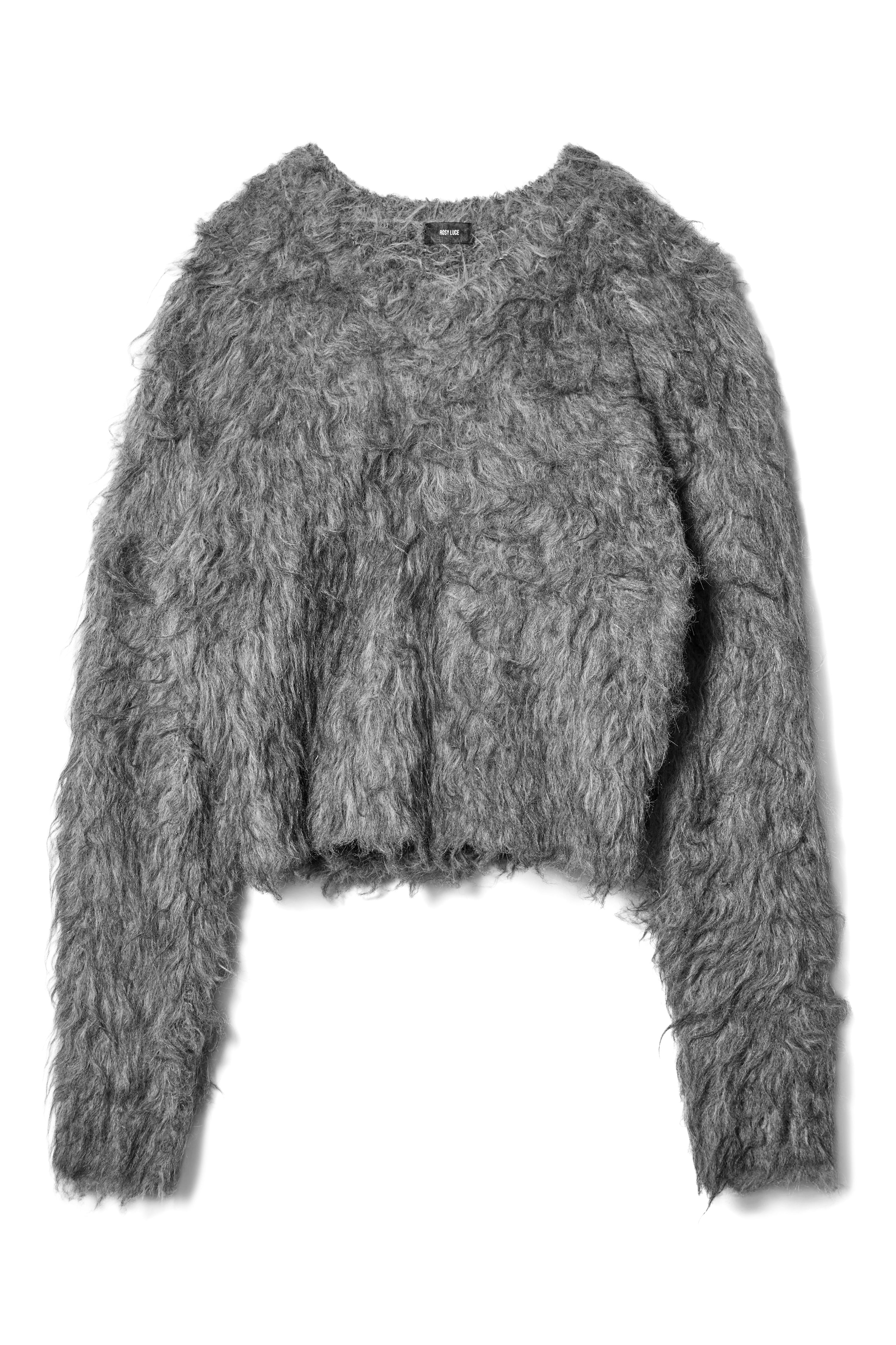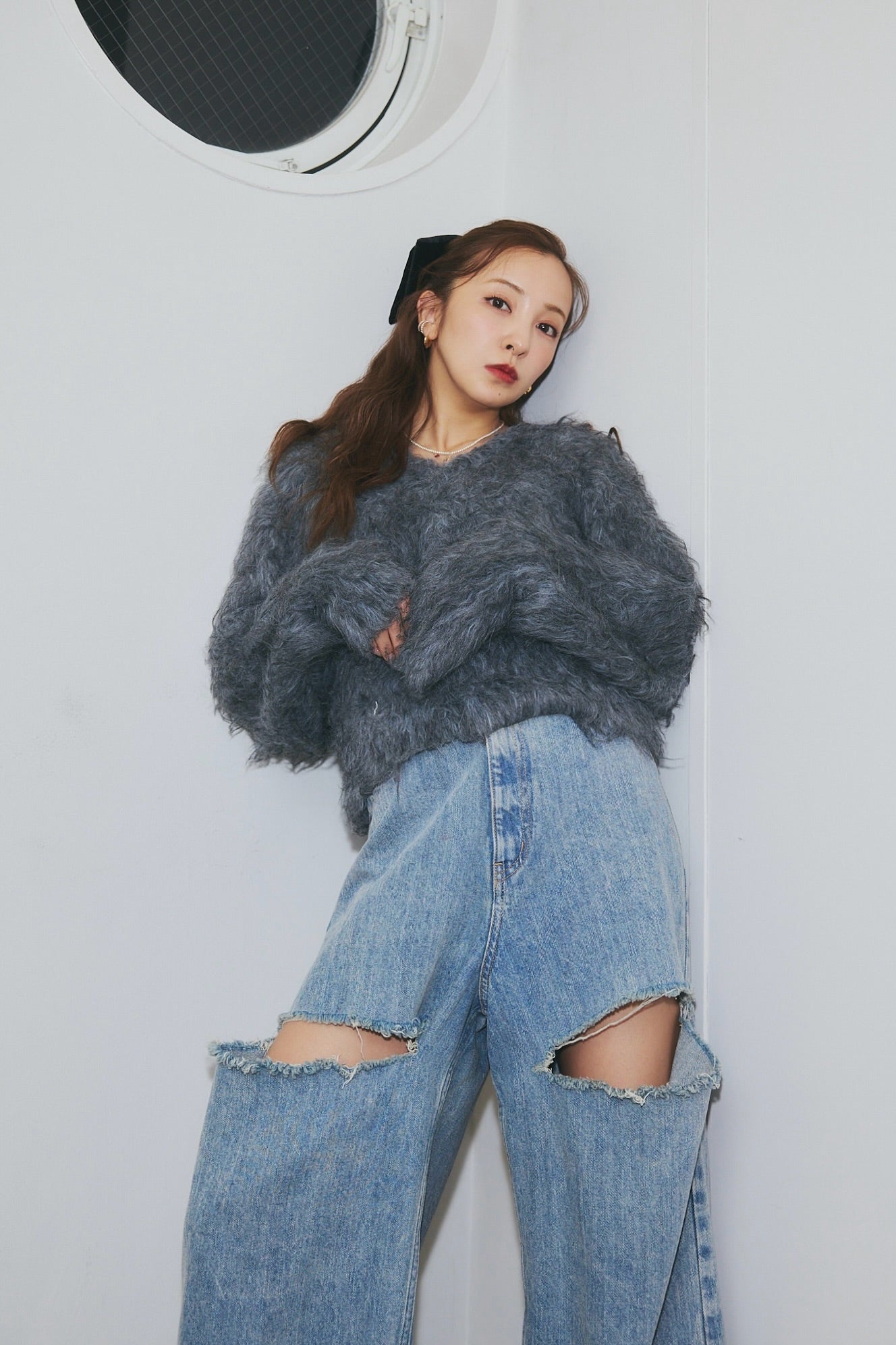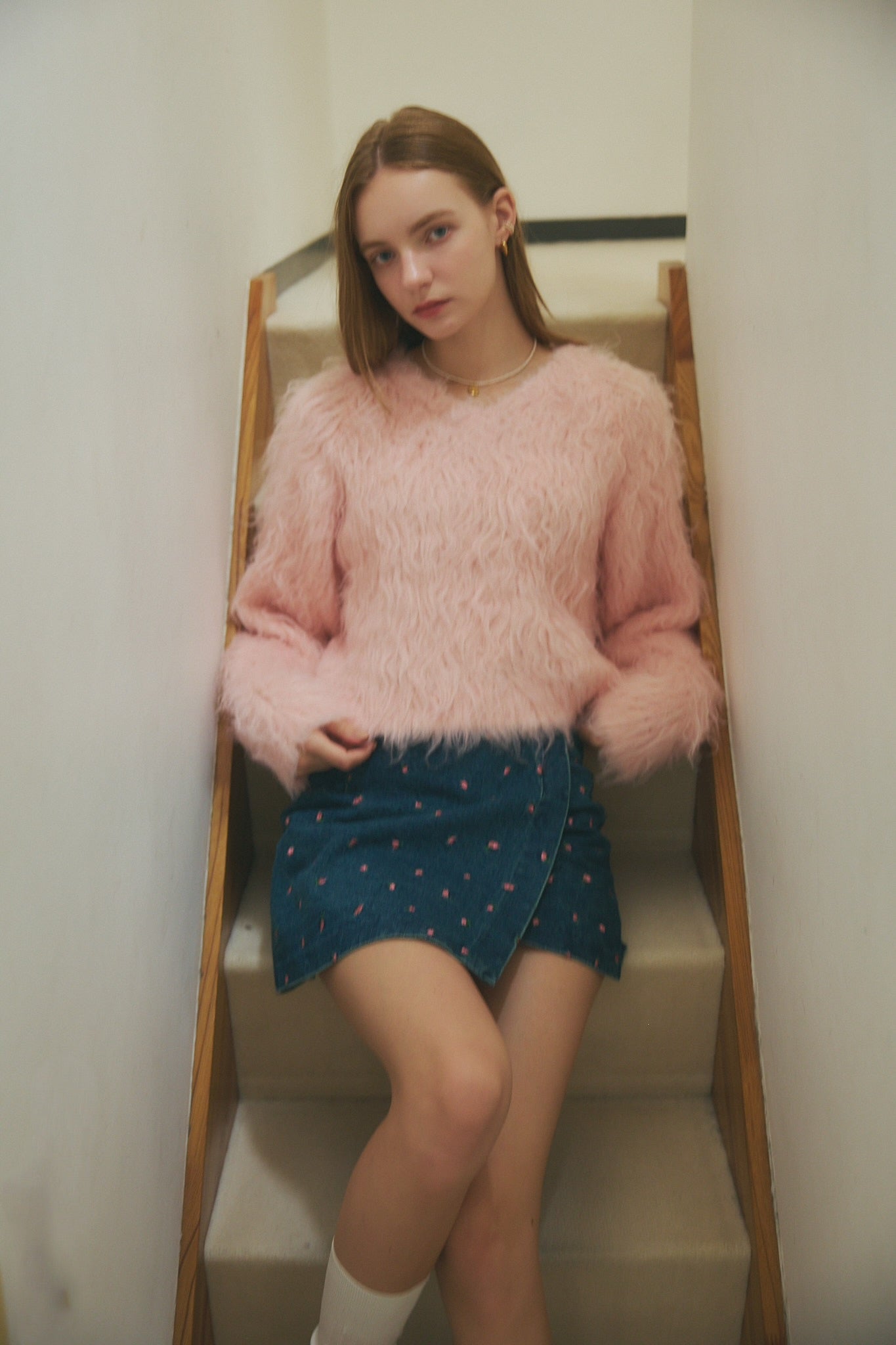 ふわふわとしたシャギー素材がシーズンムードを高めるニットプルオーバー。