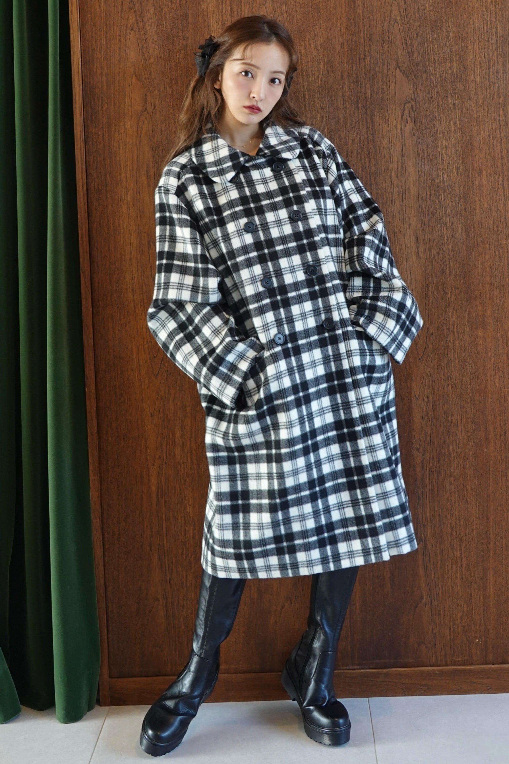 ROSY COCOON COAT - CHECK
